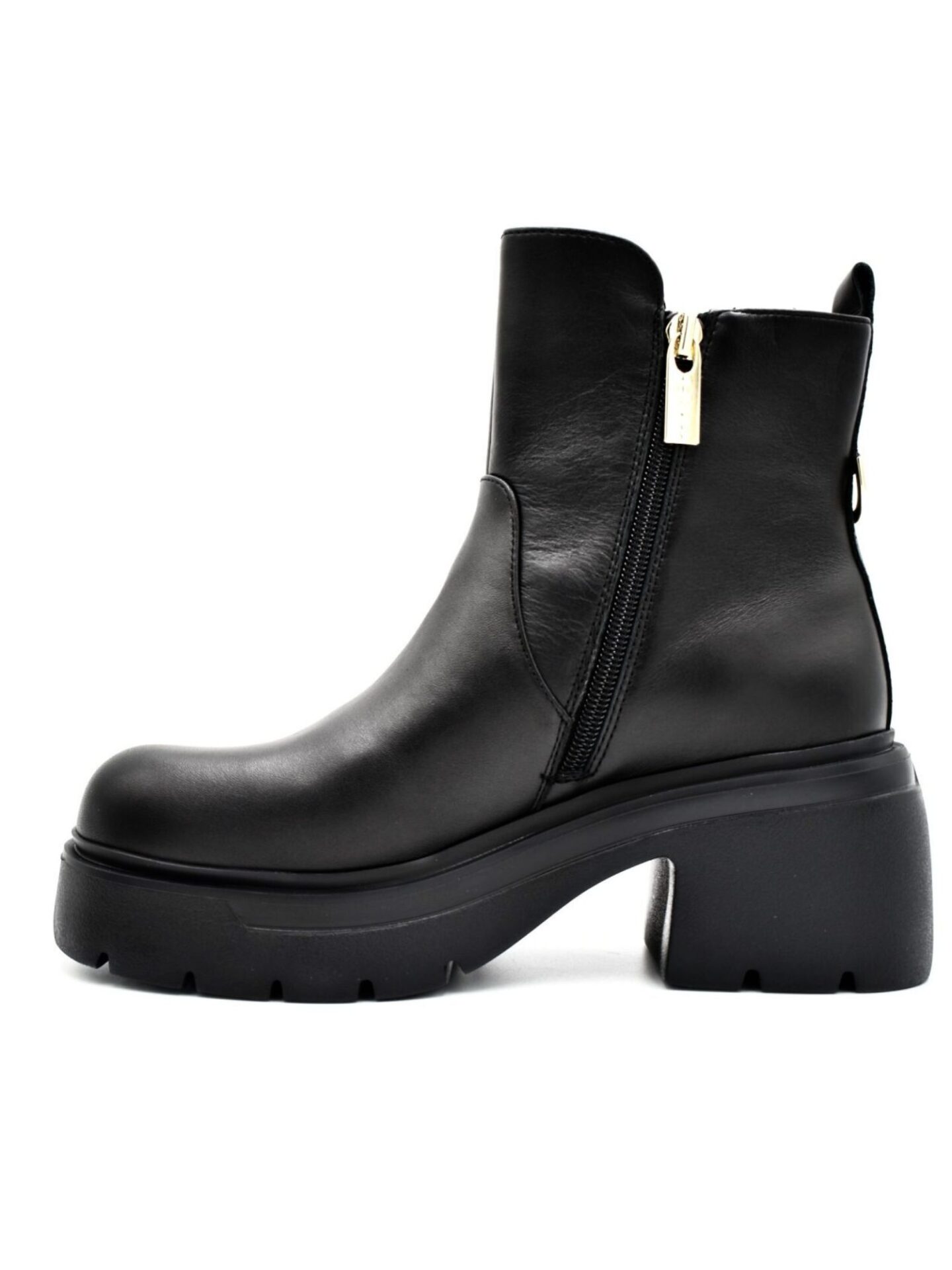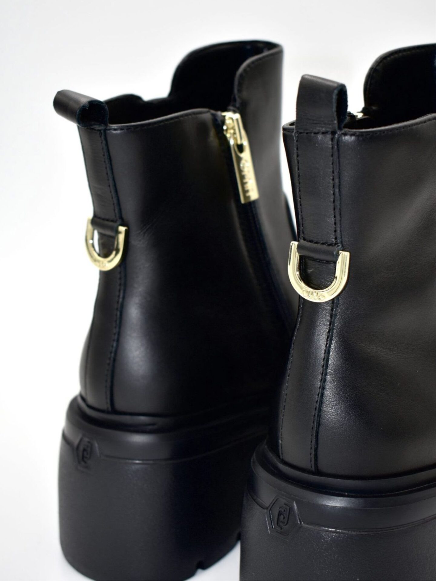 Złote elementy, takie jak suwak i ozdobne sprzączki z logo marki, dodają całości subtelnego blasku. Matowe wykończenie skóry podkreśla nowoczesny design i sprawia, że botki prezentują się niezwykle elegancko. Wytłoczone logo Liu Jo na podeszwie oraz bocznym panelu to znak luksusu i autentyczności. Każdy szczegół został dopracowany z precyzją, dzięki czemu model prezentuje się doskonale w każdej stylizacji.