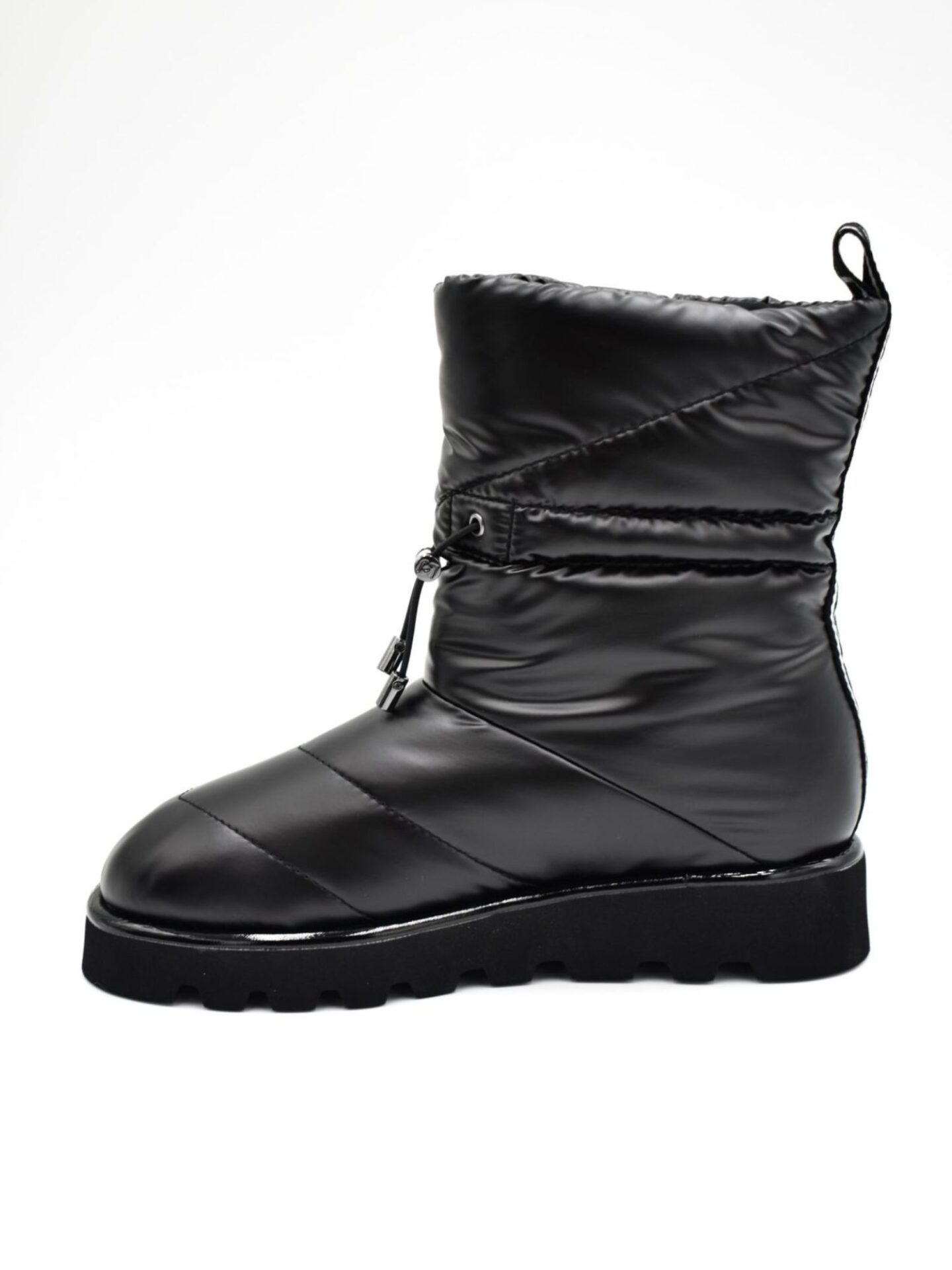 Czarne śniegowce Liu Jo łączą nowoczesny design z funkcjonalnością, dlatego świetnie sprawdzają się podczas chłodnych dni. Wykonane z trwałego, wodoodpornego nylonu, chronią stopy przed wilgocią, a jednocześnie prezentują się bardzo elegancko. Ich delikatny połysk dodaje nowoczesnego charakteru, dzięki czemu model doskonale pasuje do miejskich stylizacji.