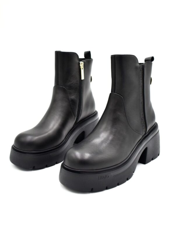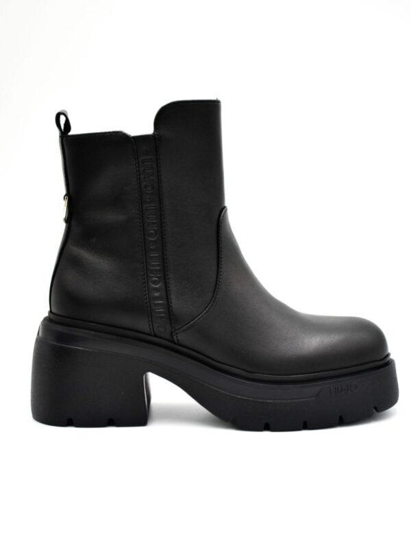 Na boku cholewki znajduje się tłoczone logo Liu Jo w czarnym kolorze, które subtelnie nawiązuje do charakterystycznego stylu marki. Z kolei z tyłu umieszczono ozdobne taśmy z napisem „Liu Jo”, nadające butom sportowej energii. Gumowa podeszwa z głębokim bieżnikiem nie tylko zwiększa przyczepność, ale także zapewnia stabilność i bezpieczeństwo podczas chodzenia po śliskich powierzchniach.