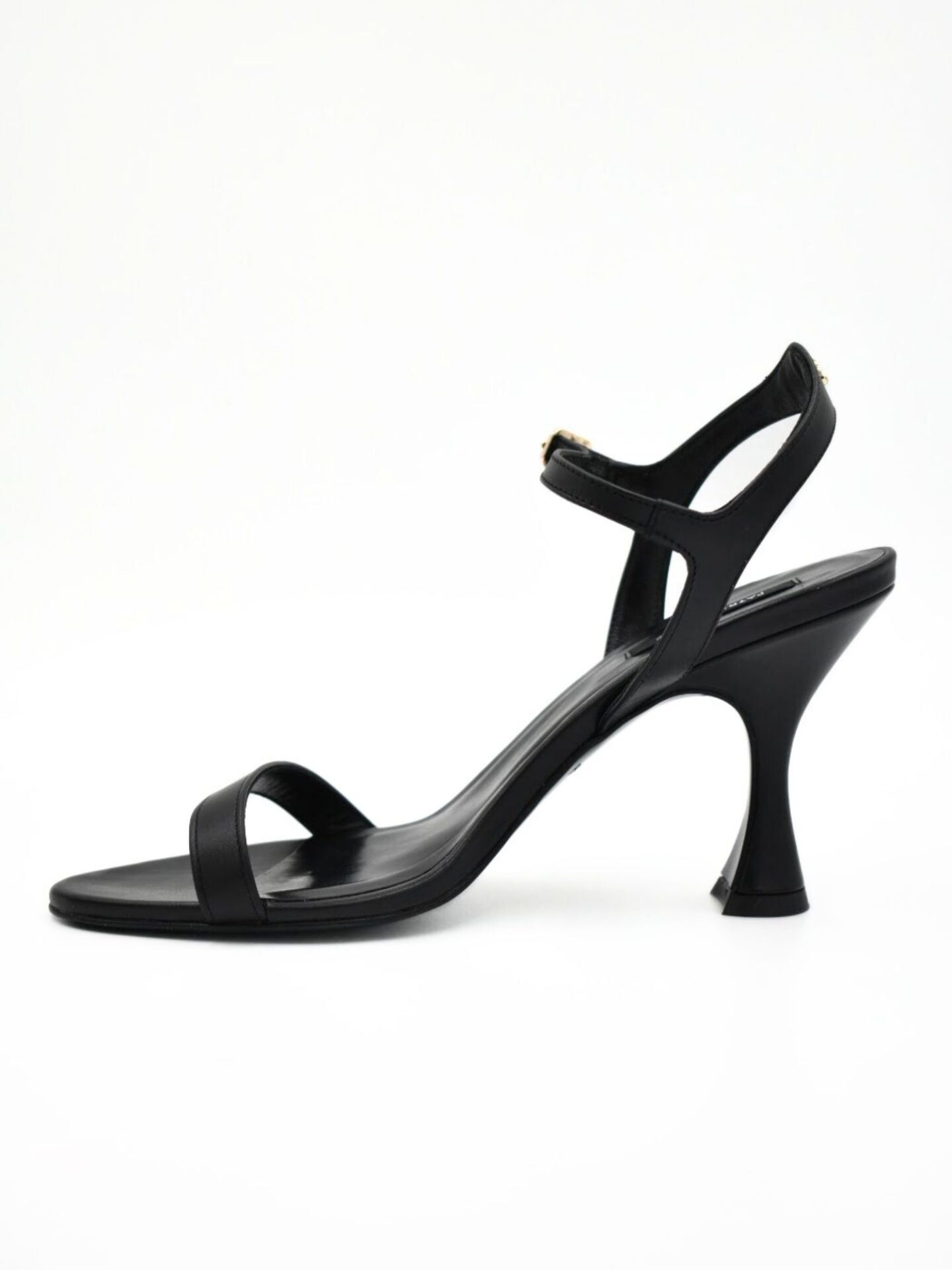 Czarne sandały na szpilce Patrizia Pepe wykonano z naturalnej skóry cielęcej. Obcas ma 8 centymetrów wysokości i gwarantuje stabilność, a regulowane zapięcie pozwala na idealne dopasowanie do stopy. Ich ponadczasowy kolor i klasyczna forma sprawiają, że są idealnym wyborem na wiele okazji, łącząc wygodę, kobiecość i luksusowy styl.