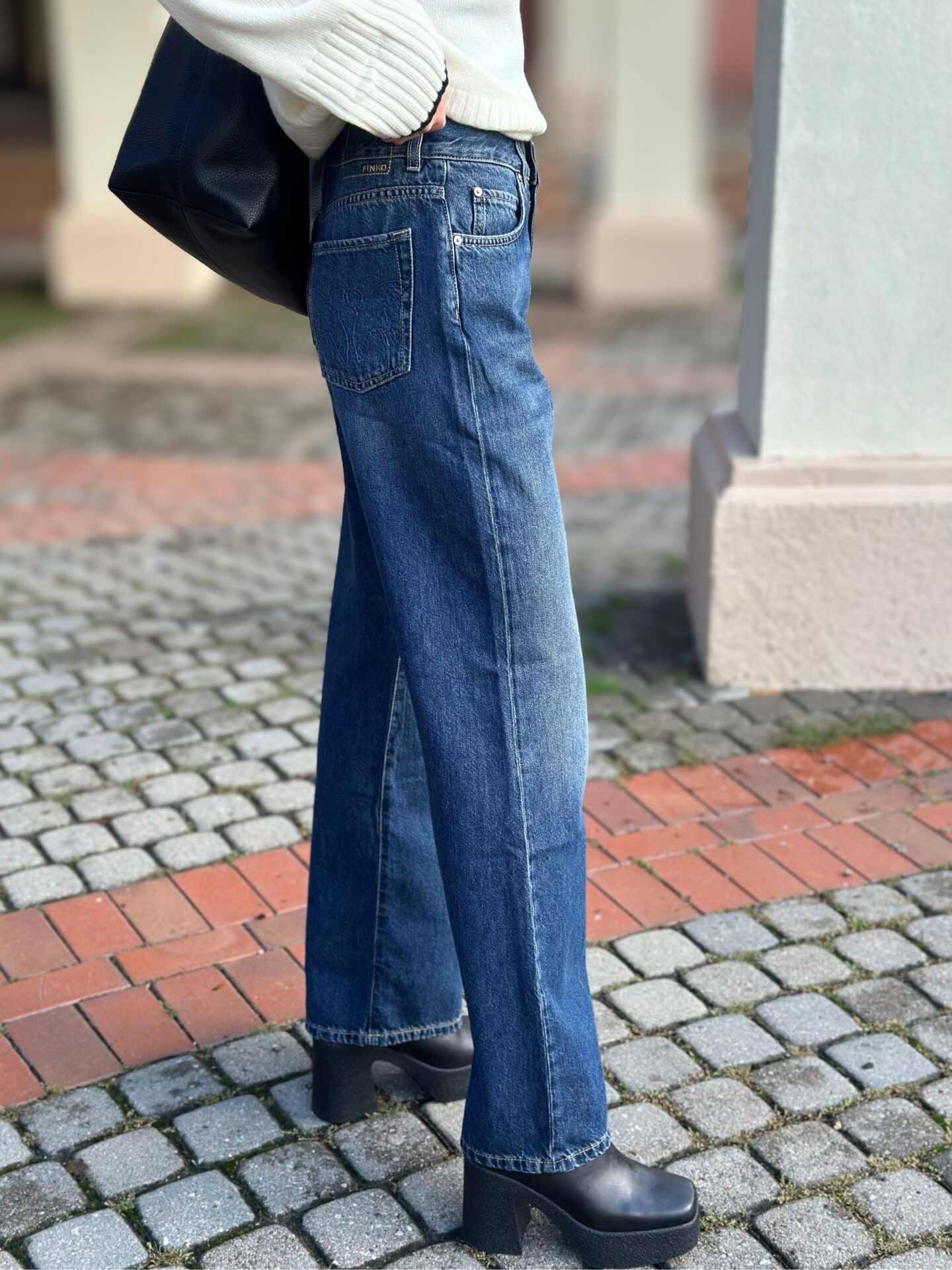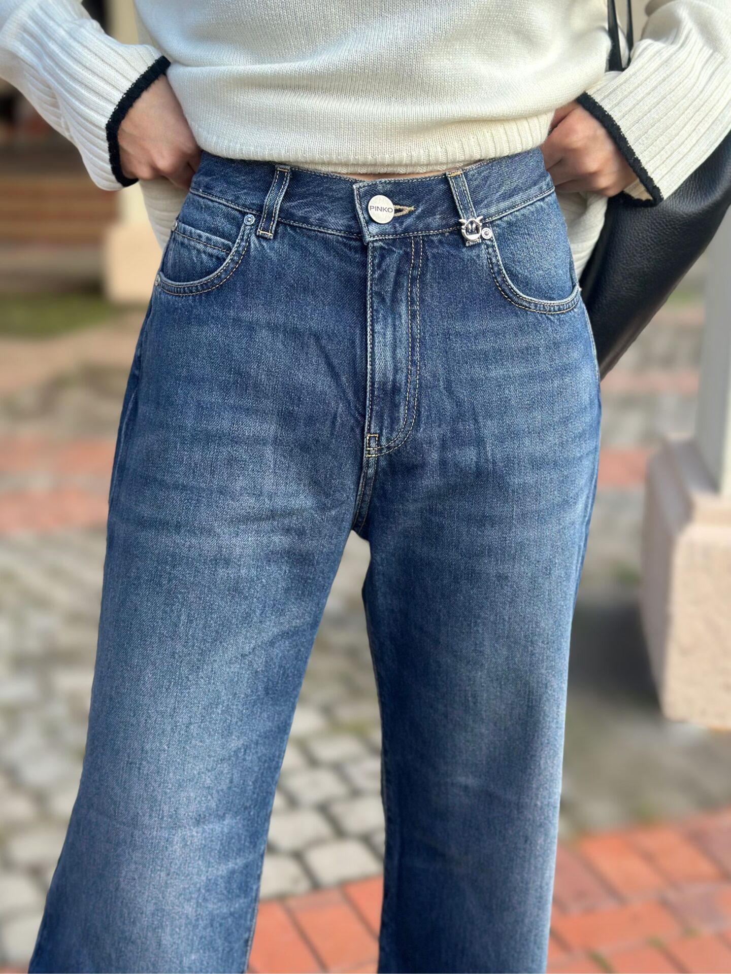Szerokie jeansy z wysokim stanem to podstawa wielu udanych stylizacji. Model Pinko Wanda Wide Leg jest niezwykle wszechstronny, co pozwala na tworzenie różnorodnych looków: