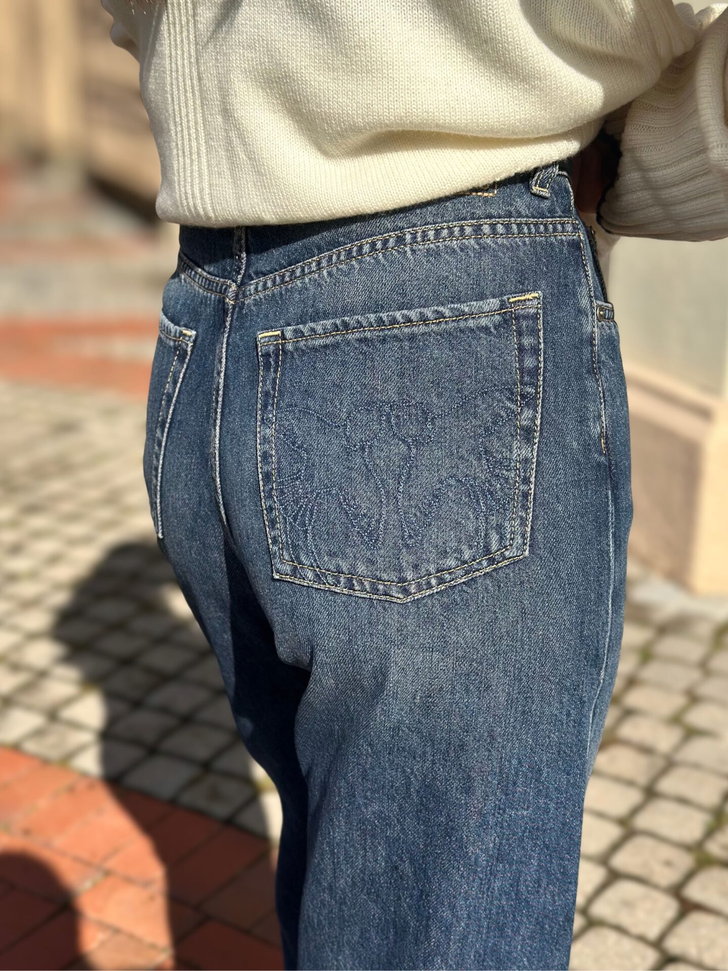 Marka Pinko słynie z dbałości o detale, co wyraźnie widać w tym modelu jeansów. Na tylnej kieszeni spodni znajduje się subtelny, haftowany detal w postaci kultowych ptaszków Pinko Love Birds. To rozpoznawalny symbol marki, który dodaje spodniom ekskluzywnego charakteru. Dodatkowo, z przodu, na jednej ze szlufek, umieszczono srebrne, metalowe logo Pinko. Ten element dyskretnie podkreśla prestiż i oryginalność produktu. Wszystkie detale zostały starannie wykonane.