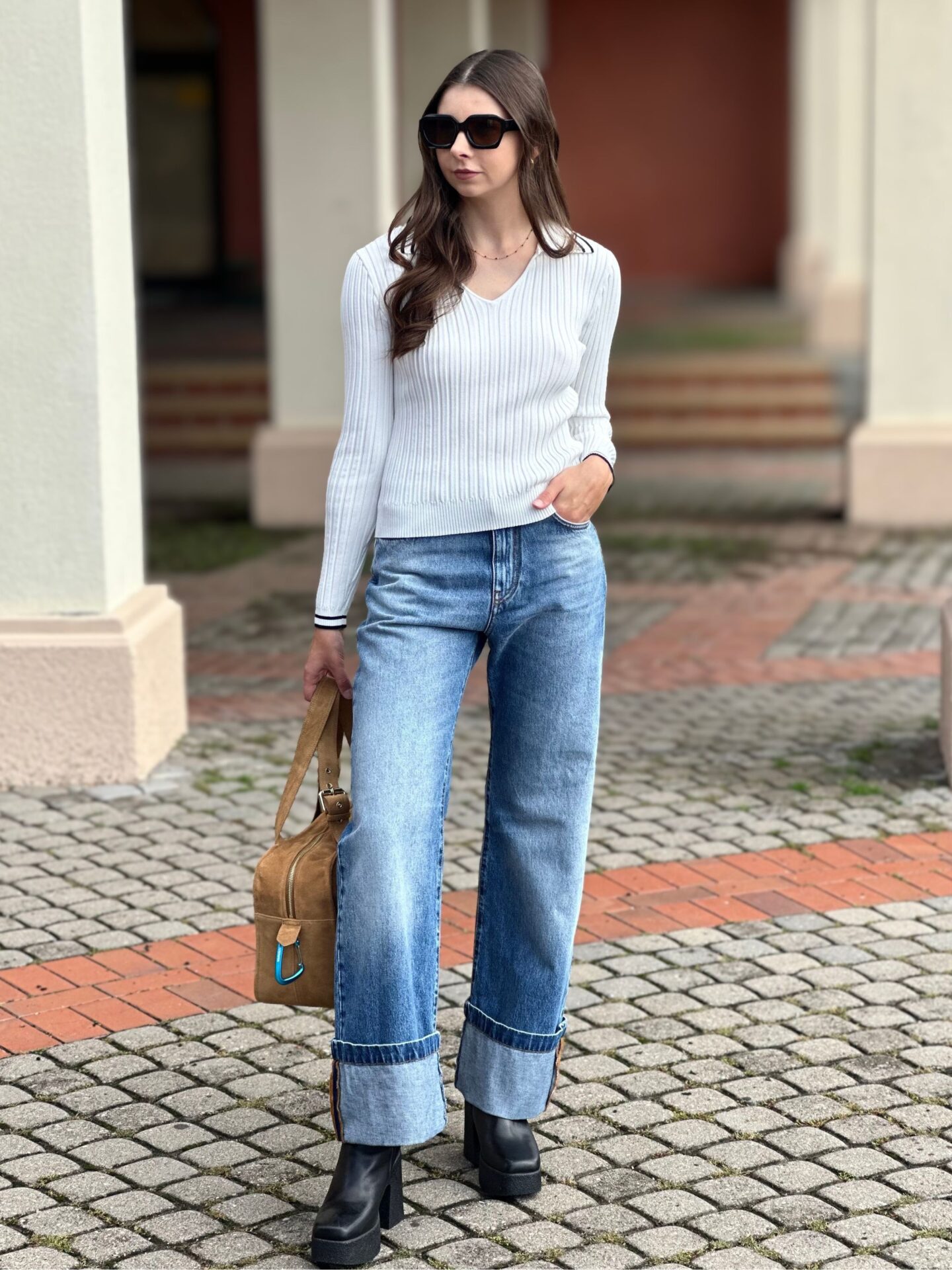 - Z minimalistycznym topem: Podkreślisz wtedy oryginalny fason nogawek i stworzysz nowoczesny, miejski look.