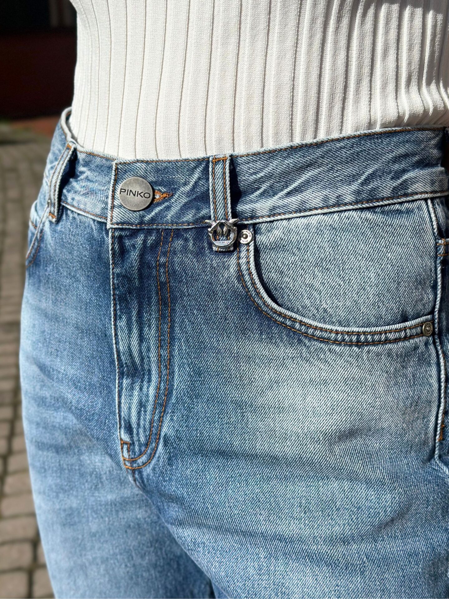 - Detale: Haftowane ptaszki Pinko na tylnej kieszeni, srebrne metalowe logo Pinko na szlufce