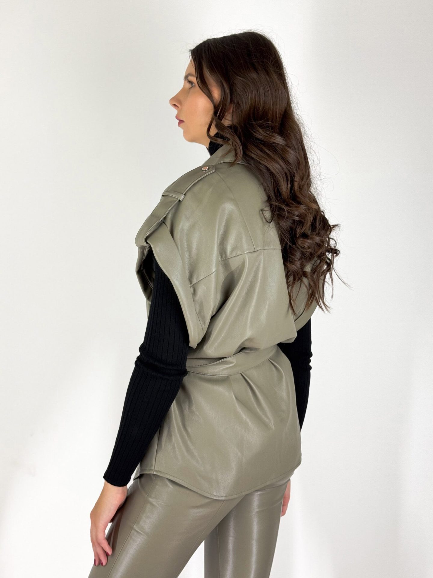 Oliwkowa kamizelka z eko skóry – wyrazisty dodatek do każdej stylizacji