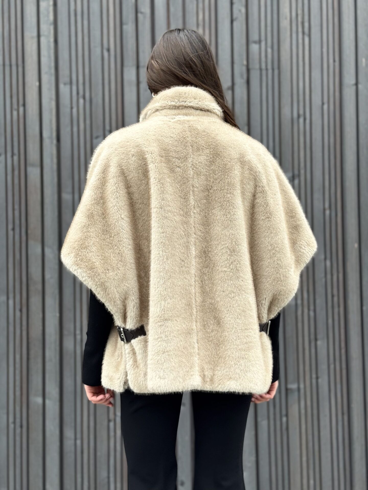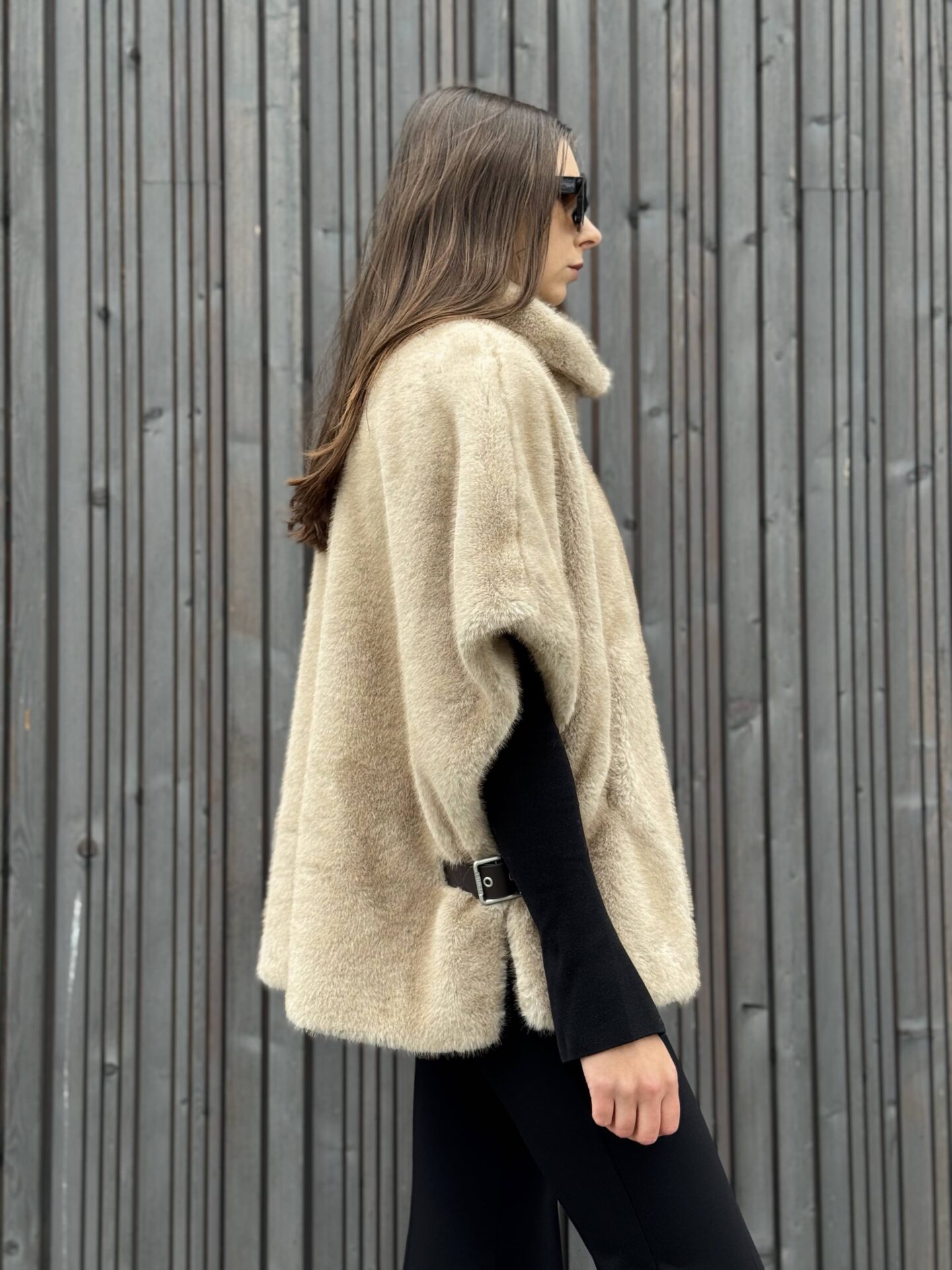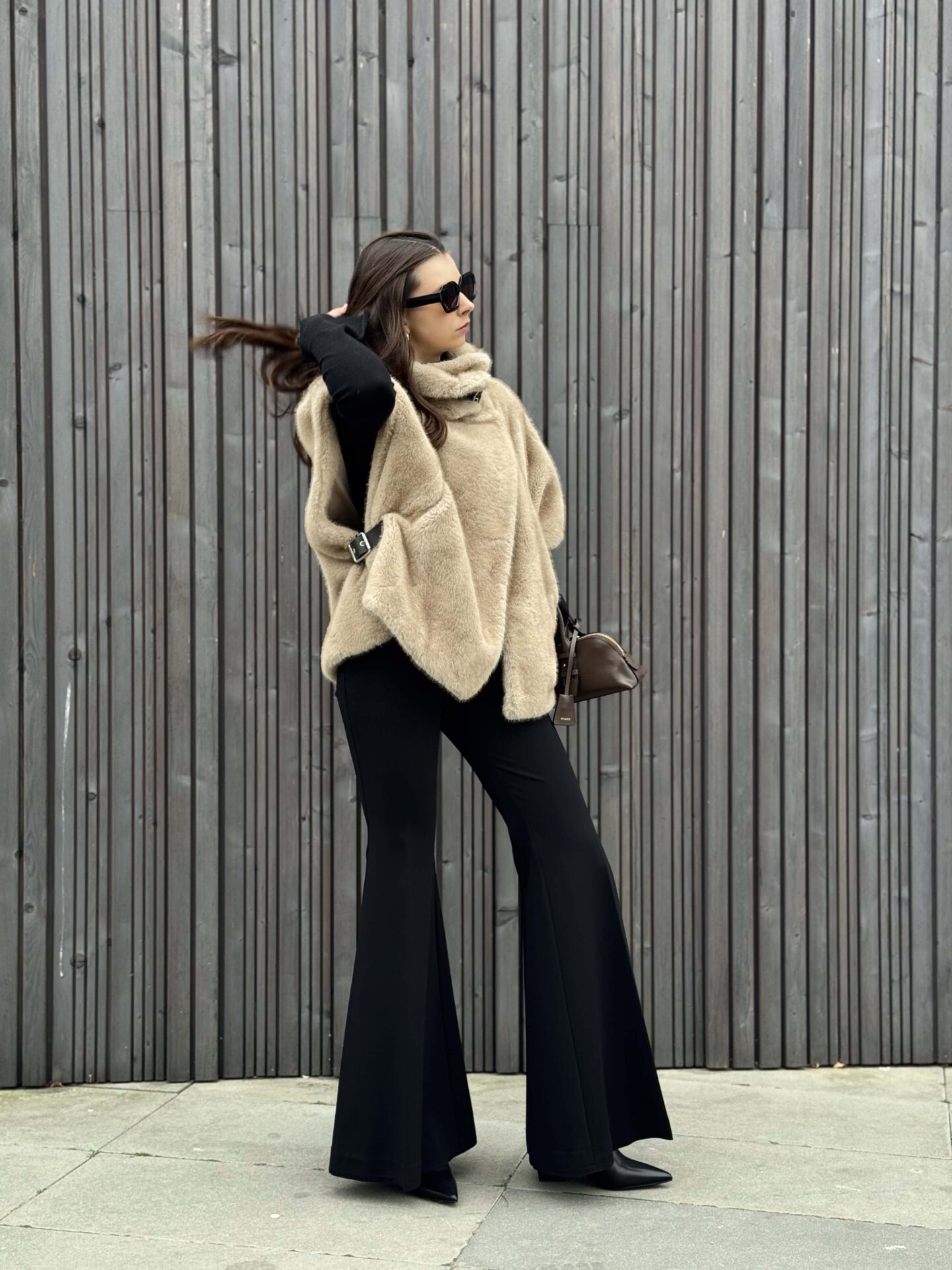 Kamizelka została zaprojektowana tak, aby nie tylko prezentowała się efektownie, lecz także była praktyczna. Po bokach oraz przy szyi znajdują się paski w kolorze brązowym, wykończone srebrnymi klamrami z możliwością regulacji. Dzięki nim możesz dopasować kamizelkę do swojej sylwetki i podkreślić jej kształt. Oversize’owy krój pozwala swobodnie łączyć ją zarówno z dopasowanymi spodniami, jak i z luźniejszymi elementami garderoby.