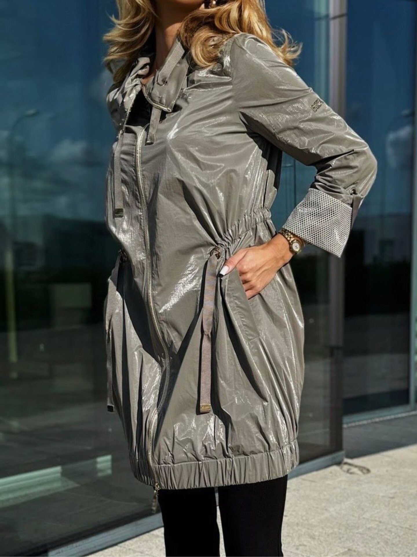 Jeśli szukasz okrycia, które sprawdzi się w sezonie przejściowym, długa szara kurtka Boca będzie doskonałym wyborem. Jej lekki, połyskujący materiał od razu przyciąga uwagę, a subtelny odcień szarości świetnie wpisuje się w aktualne trendy. Kurtka prezentuje się elegancko i jednocześnie oferuje komfort, dzięki czemu sprawdza się zarówno na co dzień, jak i w bardziej stylowych zestawieniach.