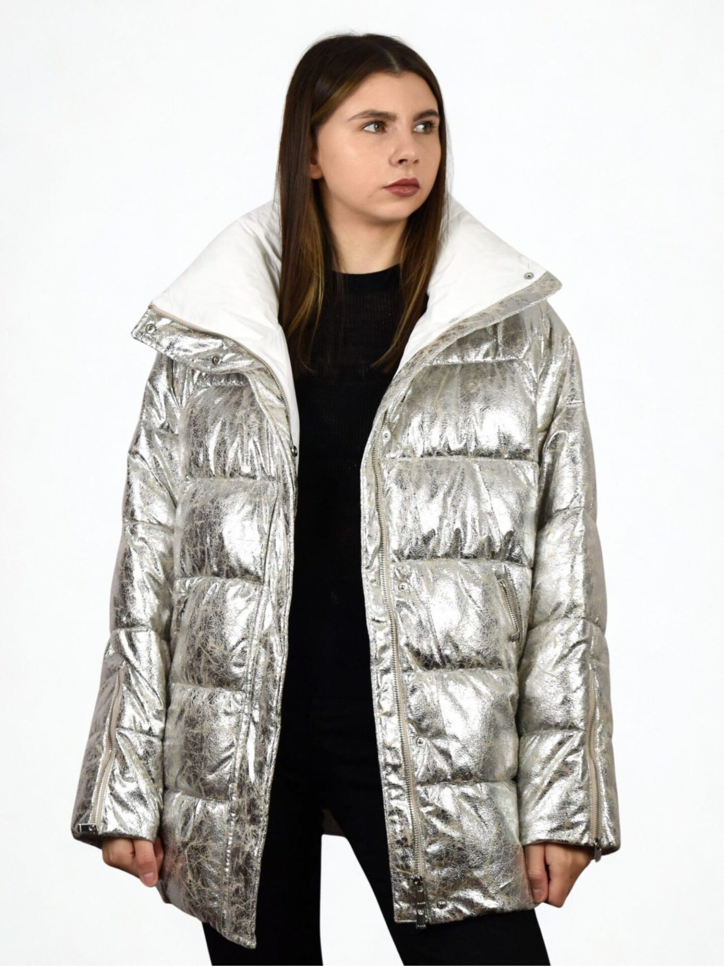Srebrna Kurtka Pinko Brunella – odważny wybór na chłodne dni
