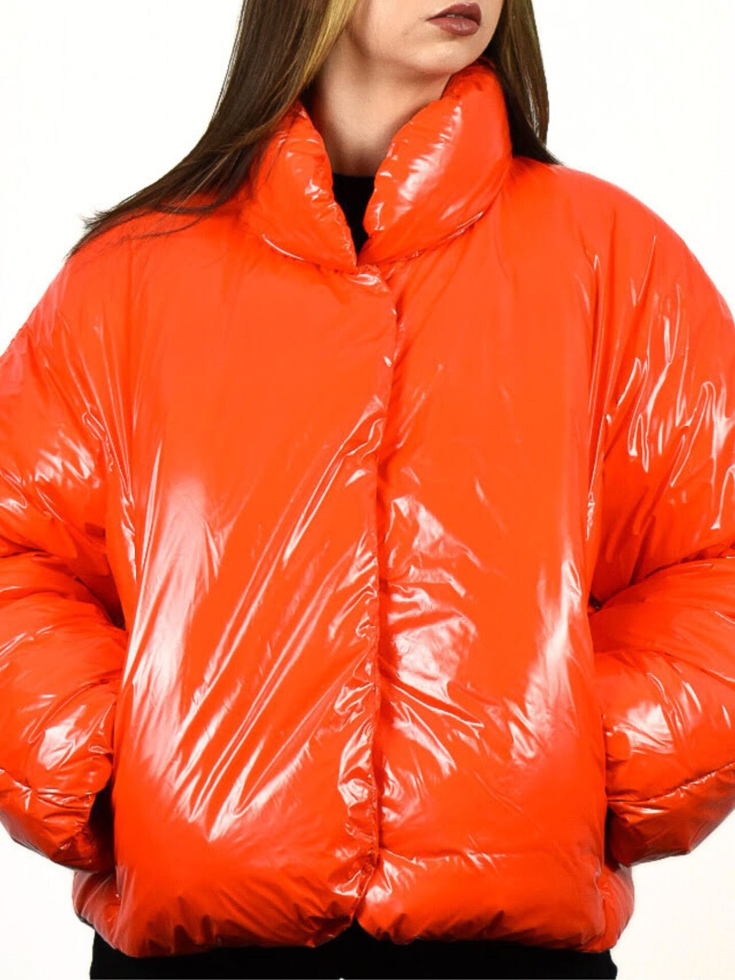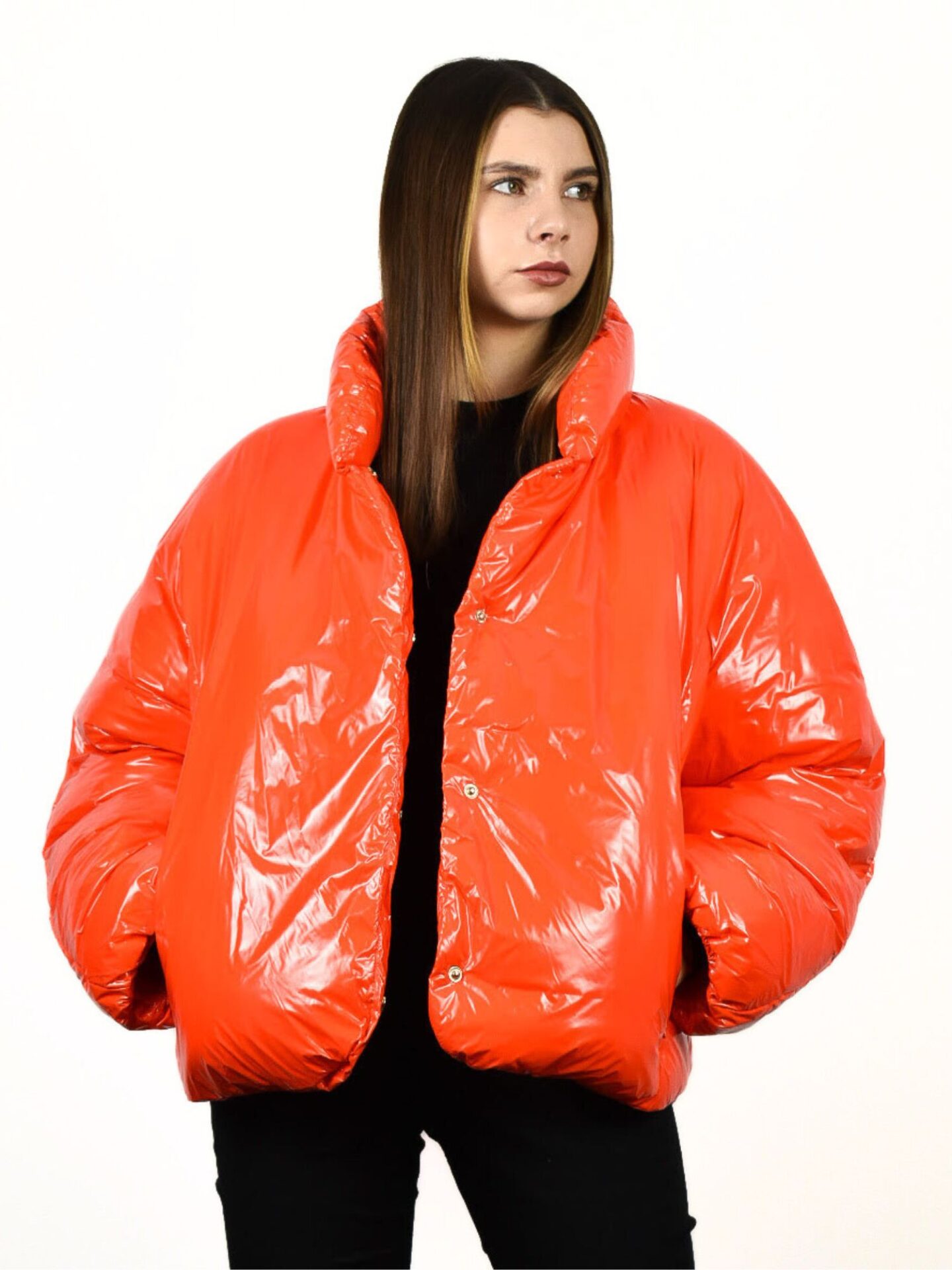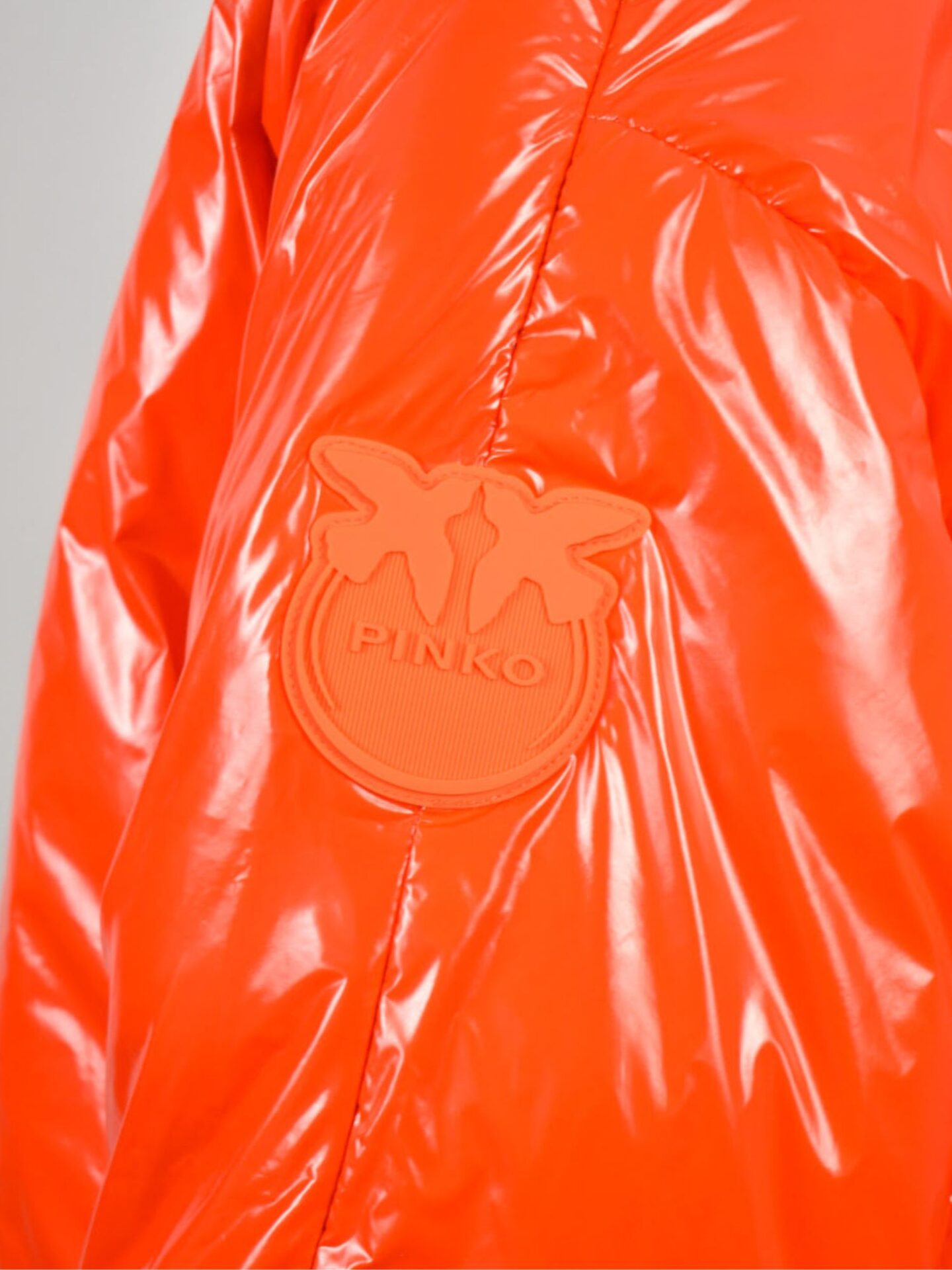 Pomarańczowa kurtka Pinko Ianna Imbottito wyróżnia się precyzyjnym wykończeniem i przemyślanym krojem. Zapinanie na guziki jest praktyczne i estetyczne, natomiast dwie boczne kieszenie dodają funkcjonalności. Na rękawie umieszczono subtelną naszywkę z logo Pinko, która stanowi elegancki detal rozpoznawalny dla fanek marki. Gładki tył podkreśla nowoczesną prostotę projektu, a lekko połyskujący materiał przyciąga wzrok przy każdym ruchu.