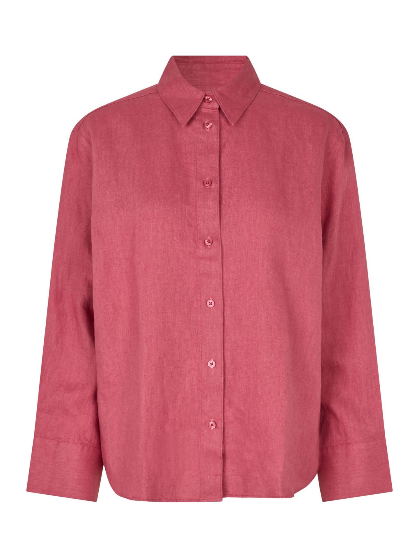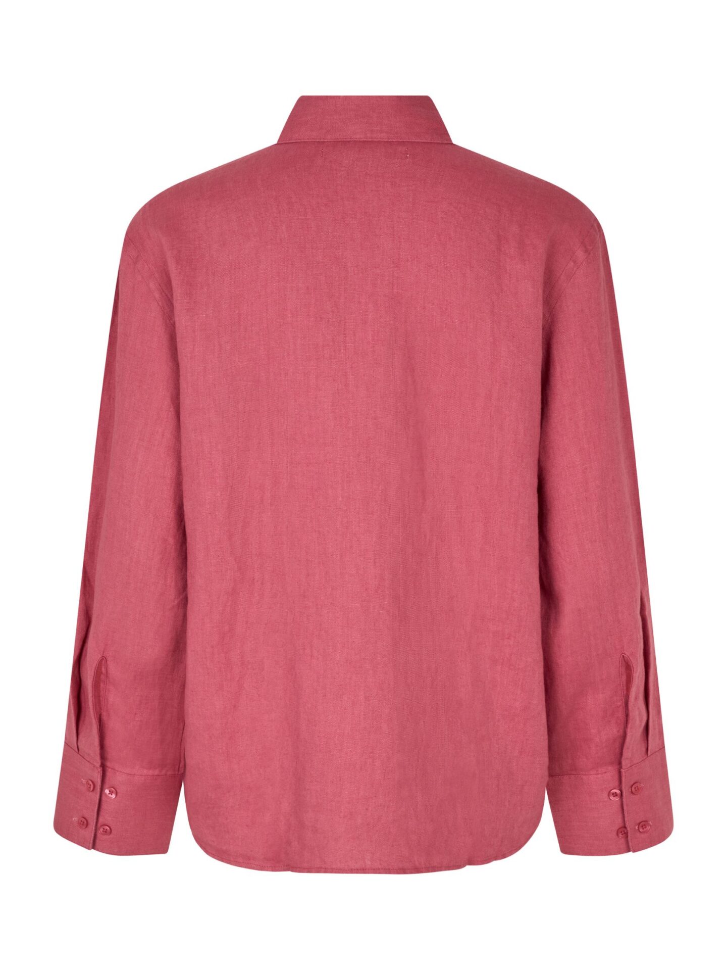 Koszula zapinana jest na rząd dopasowanych kolorystycznie guzików, które harmonijnie komponują się z głębokim, malinowym odcieniem tkaniny. Unikatowy kolor sprawia, że wyróżnia się na tle klasycznych propozycji i pasuje zarówno do codziennych, jak i bardziej eleganckich zestawień.
