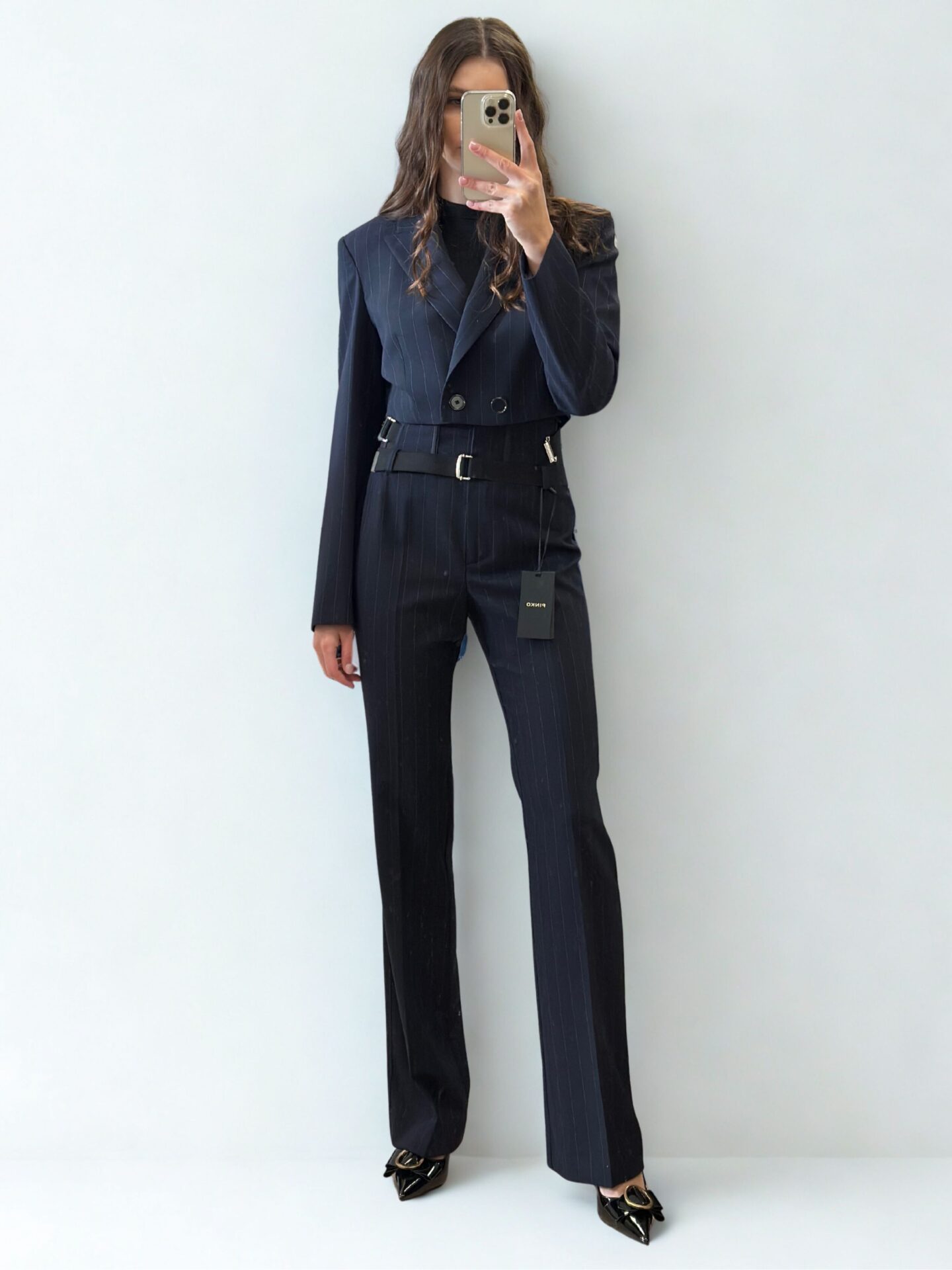 Projektanci zadbali o każdy szczegół, aby zapewnić najwyższą jakość produktu. Starannie skrojone ramiona nadają marynarce struktury, a podwójne guziki podkreślają jej elegancki charakter. Dodatkowo krótki krój pozwala nosić ją zarówno do spodni z wysokim stanem, jak i do klasycznych jeansów. Dzięki temu możesz tworzyć wiele różnorodnych stylizacji.