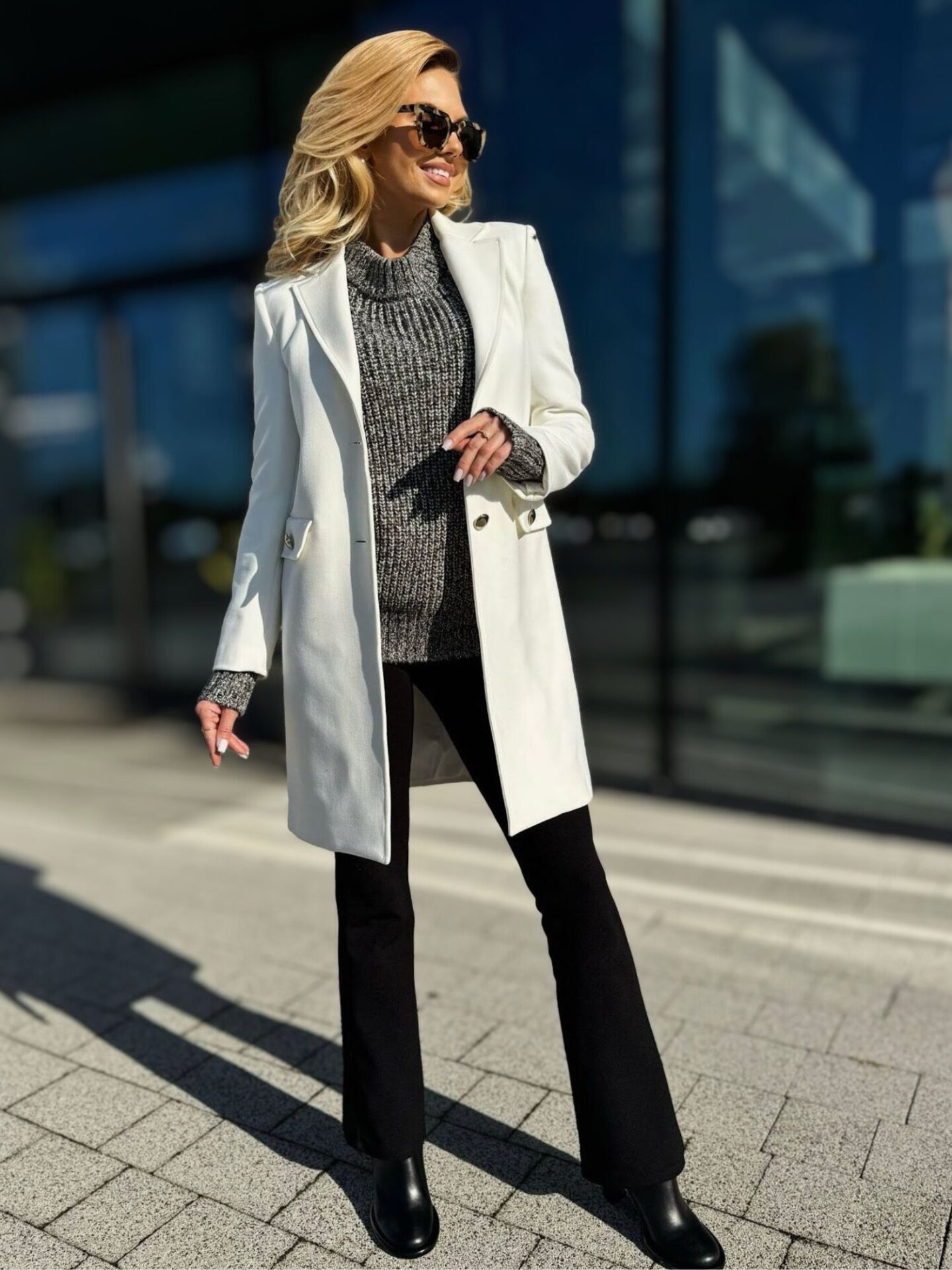Jeśli szukasz okrycia wierzchniego, które posłuży Ci na więcej niż jeden sezon, elegancki biały płaszcz Liu Jo to doskonała inwestycja. Łączy w sobie nowoczesną estetykę z ponadczasową elegancją, dlatego świetnie odnajduje się w różnych stylizacjach. Sprawdzi się zarówno do pracy, na spotkanie biznesowe, jak i na wieczorne wyjście. Dzięki jakości wykonania i starannemu wykończeniu masz pewność, że posłuży Ci przez długi czas. Wybierając ten model, zyskujesz pewność siebie i styl, który zawsze wygląda świeżo i modnie. Ten płaszcz to wybór, który zawsze się opłaca – niezależnie od sezonu i okazji.