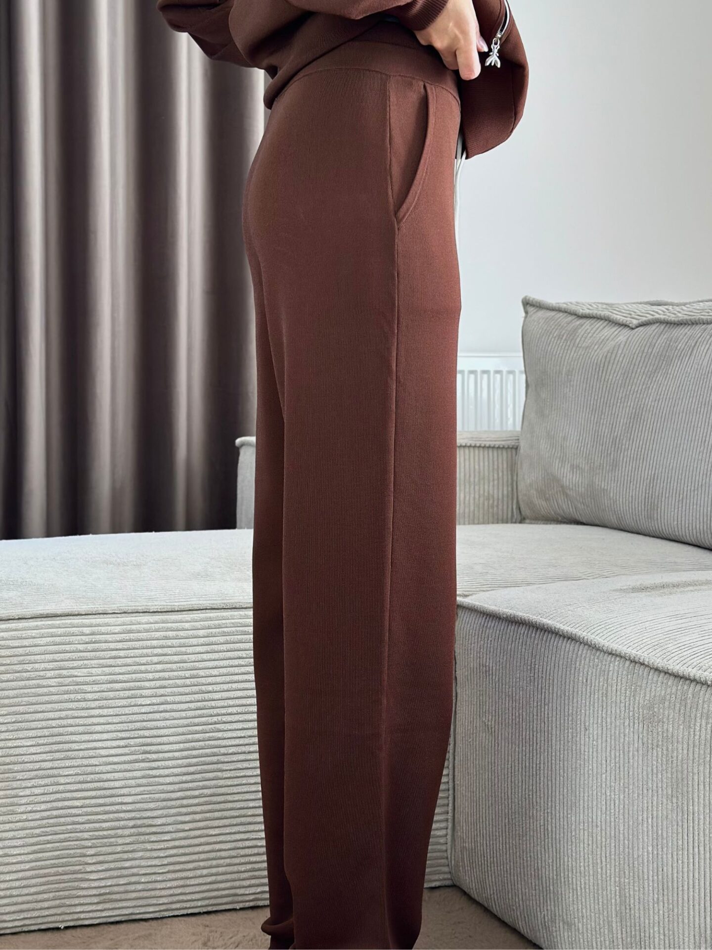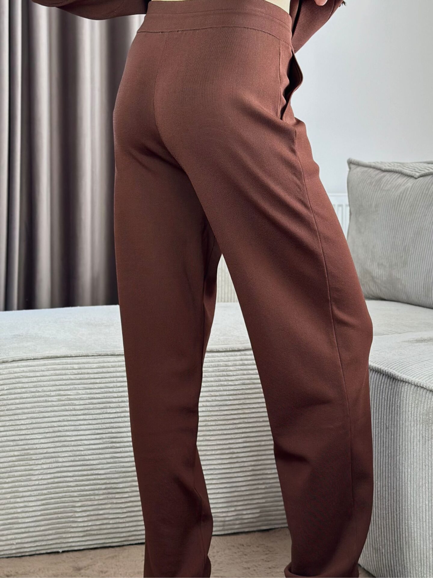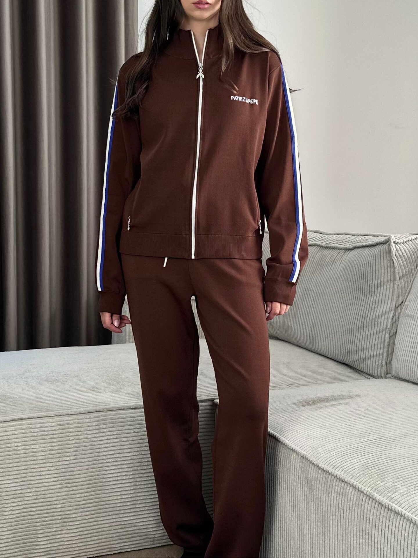 Czekoladowo-brązowe spodnie dresowe marki Patrizia Pepe to propozycja, która łączy komfort i styl. Dzięki klasycznemu krojowi zyskują ponadczasowy charakter, a subtelne logo podkreśla ich ekskluzywny design. Spodnie sprawdzą się zarówno w codziennych zestawach, jak i w bardziej sportowych stylizacjach.