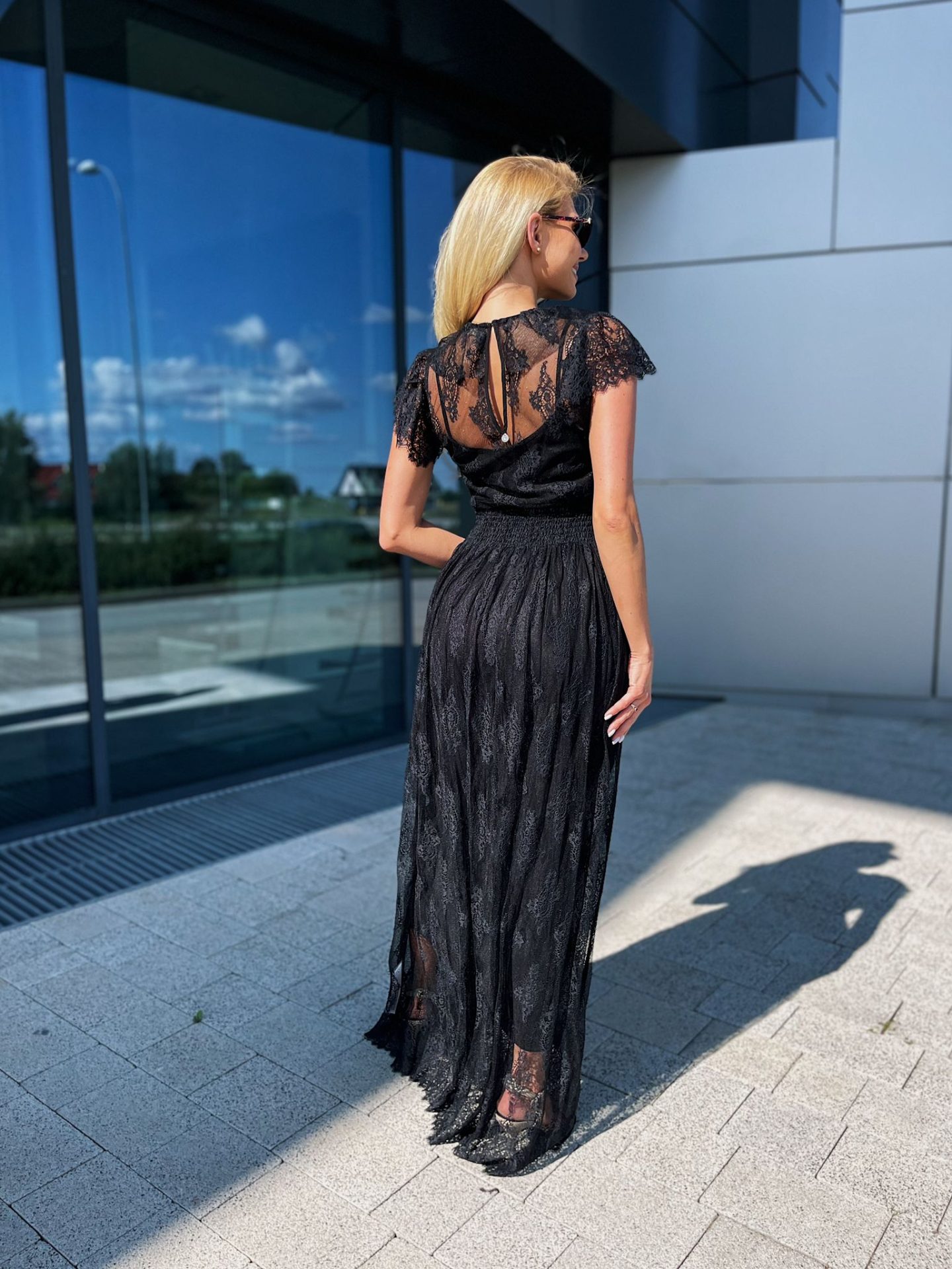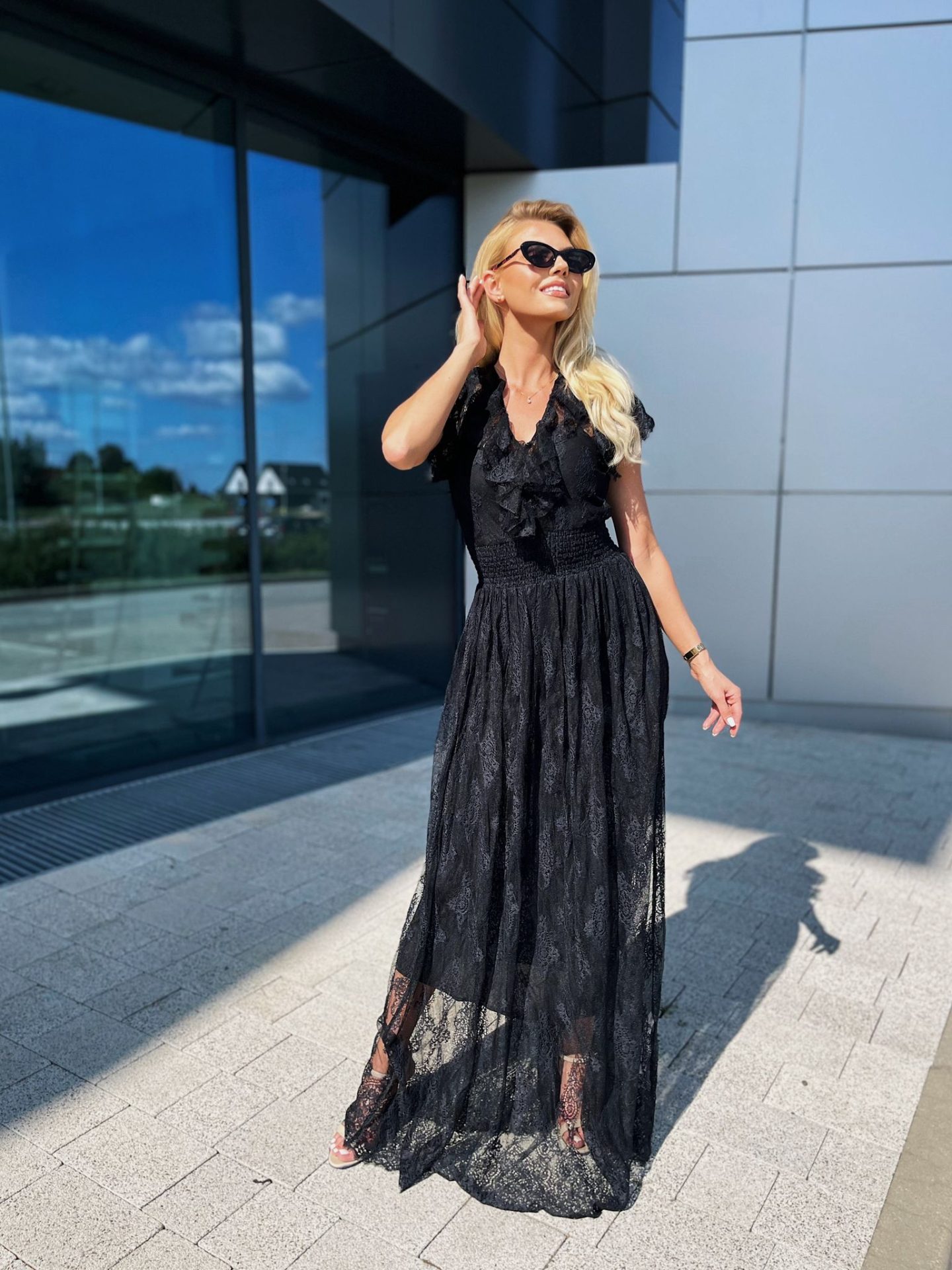 Tej jesieni wybierz zmysłowy styl. Czarna sukienka Liu Jo to kwintesencja kobiecości i elegancji. Została w całości wykonana z transparentnej koronki. Dzięki temu wygląda niezwykle zmysłowo, a zarazem subtelnie. W zestawie znajdziesz również czarną halkę. Gwarantuje ona komfort noszenia i pozwala czuć się pewnie w każdej sytuacji. Długość maxi sukienki dodaje jej szyku. Ponadto, materiał jest bardzo lekki i delikatny.
