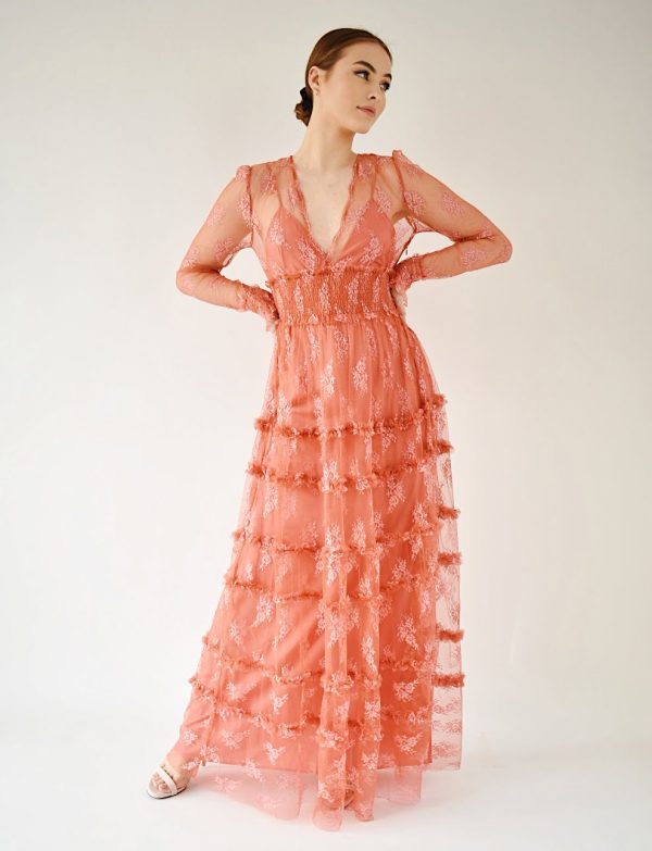 Włoska marka Liu Jo słynie z dbałości o detale. Dlatego sukienka ma precyzyjne wykończenia. Koronkowy materiał jest miękki i przyjemny dla skóry. Zapewnia on maksymalny komfort przez cały wieczór. Mankiety i falbanki przy dekolcie dodają jej romantycznego charakteru. Z kolei subtelne marszczenia w pasie pięknie podkreślają talię. Natomiast luźny dół zapewnia swobodę ruchów. Sukienka ma także zapięcie na mały guzik z tyłu. To ułatwia jej zakładanie i zdejmowanie.