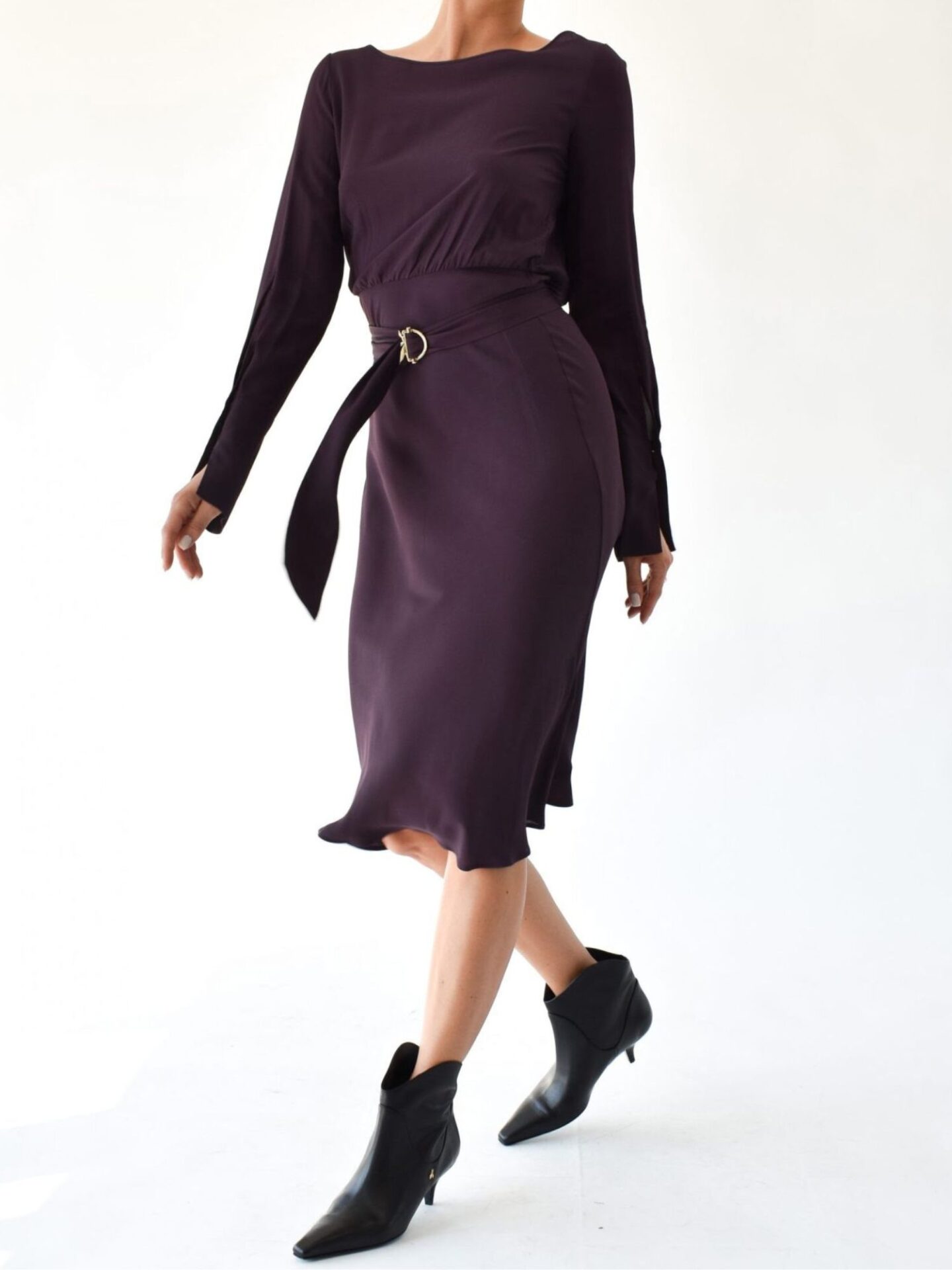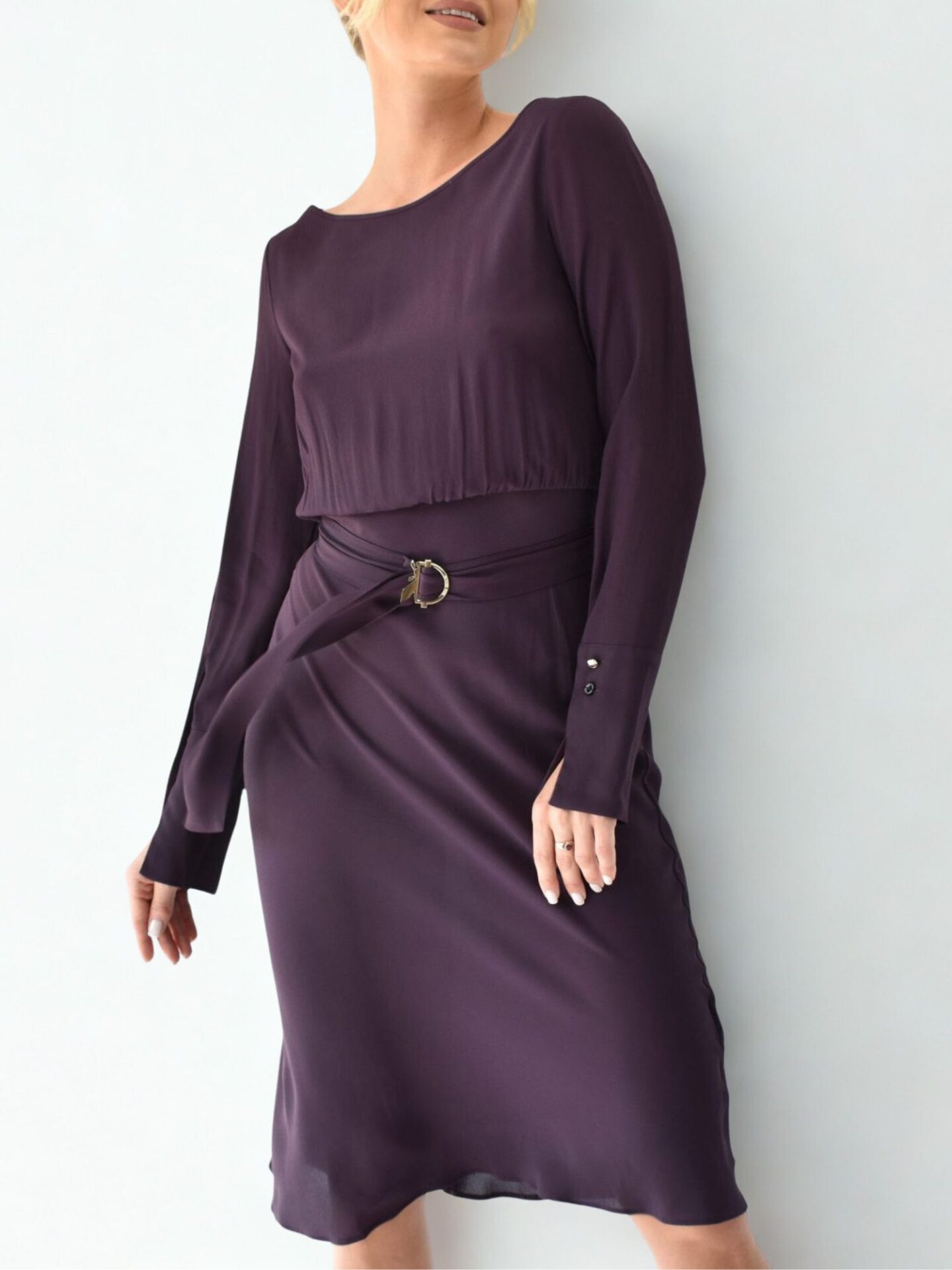 Odkryj wyjątkową sukienkę włoskiego projektu od marki Patrizia Pepe – fioletową sukienkę, która emanuje stylem i komfortem. Model wykonany z najwyższej jakości wiskozy, zapewnia doskonałą trwałość i wygodę. Wycięcia na rękawach dodają lekkości i unikalnego charakteru, wzbogacając klasyczny fason. Sukienka, lekko za kolano, idealnie podkreśla sylwetkę. Wyjątkowy detal – materiałowy pasek z klamrą z logo marki. – umożliwia dostosowanie sukienki do Twoich preferencji, podkreślając sylwetkę. Wycięcie na plecach nadaje tej sukience niezwykłego uroku.