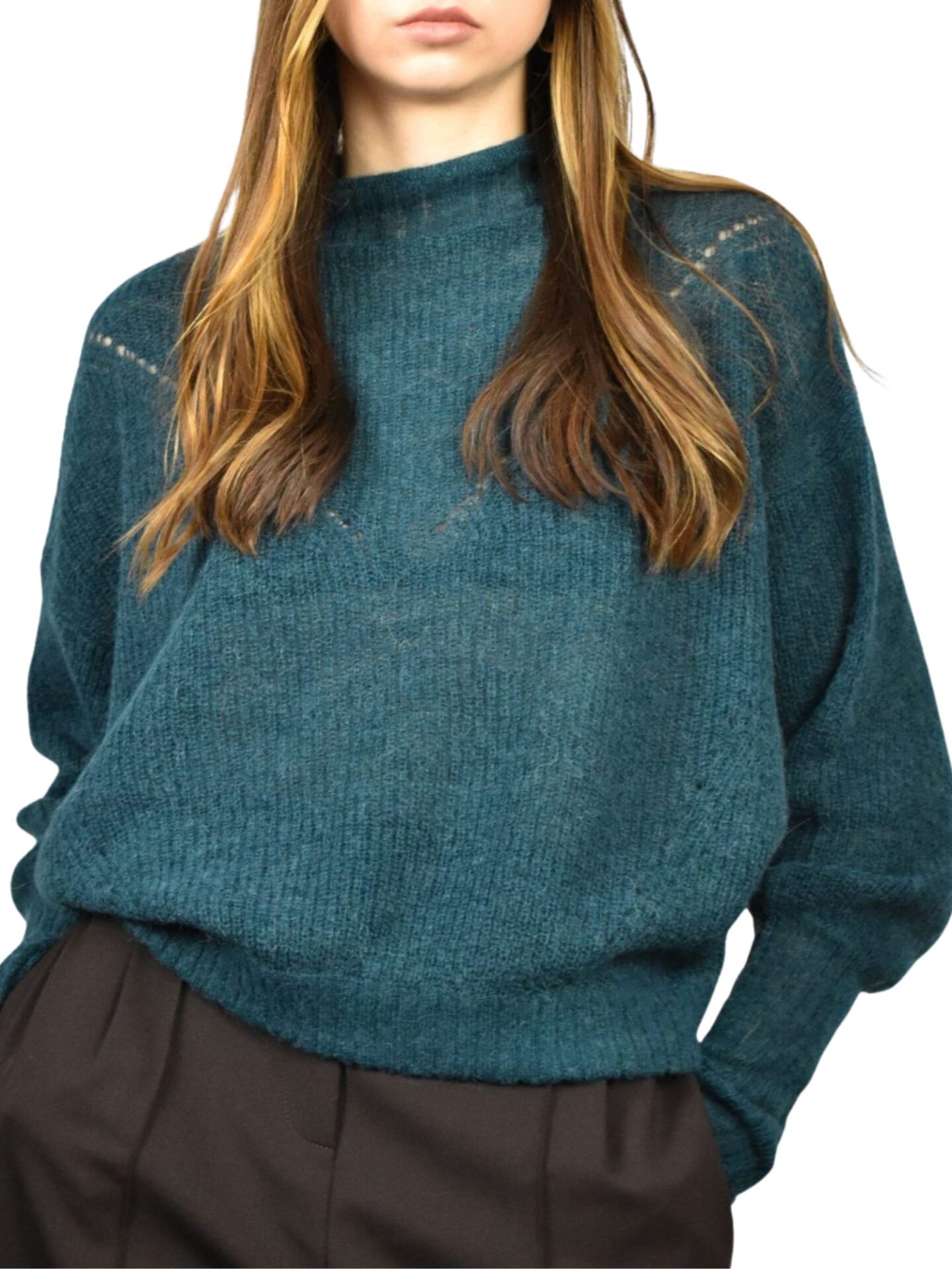 Sweter Patrizia Pepe zachwyca prostotą i jakością. Jego luźny, nietoperzowy krój doskonale wpisuje się w aktualne trendy. Butelkowa zieleń to barwa, która nadaje stylizacjom głębi i wyrafinowania, dlatego ten model będzie świetnym wyborem na chłodniejsze dni. W połączeniu z klasycznymi spodniami stworzy swobodny, ale dopracowany look. Możesz go zestawić z botkami lub mokasynami – zawsze będzie wyglądał świeżo i stylowo. Ten model sprawdzi się także jako warstwa pod marynarkę lub płaszcz, co daje jeszcze więcej możliwości stylizacji. Ciepło, lekkość i trwałość w jednym