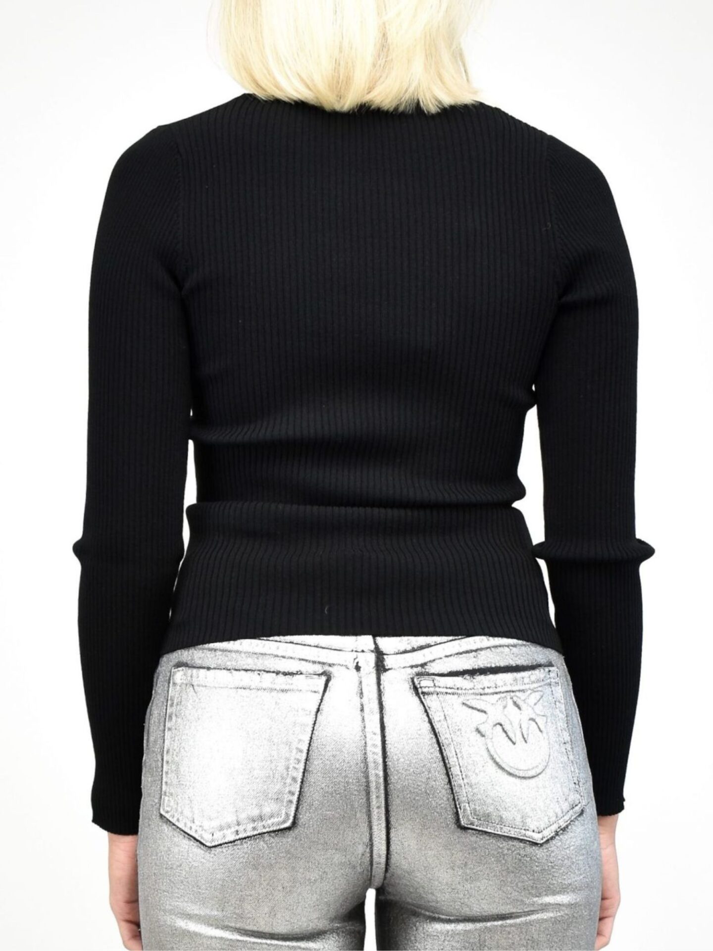 Rękawy są długie i lekko opinają ciało, co sprawia, że model świetnie nadaje się również na chłodniejsze dni. Prążkowana struktura tkaniny dodaje głębi, a dzięki swojej elastyczności bluzka dopasowuje się do różnych typów sylwetek. Marka Pinko zadbała o każdy detal – przeszycia są równe, a wykończenia bardzo staranne, dlatego bluzka zachowuje swój wygląd nawet po wielu praniach.