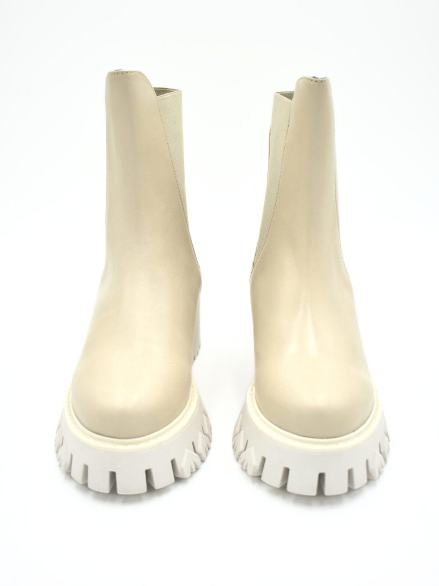Wykonane z najwyższej jakości skóry naturalnej jasne sztyblety gwarantują trwałość i dopasowanie do stopy. Miękkie wnętrze buta zwiększa komfort noszenia, dzięki czemu możesz w nich spędzić cały dzień, nie odczuwając zmęczenia. Gumowa podeszwa z wyraźnym bieżnikiem zapewnia stabilność i przyczepność, nawet na śliskiej nawierzchni. Z kolei elastyczne wstawki po bokach nie tylko ułatwiają zakładanie, ale także nadają butom nowoczesny wygląd.