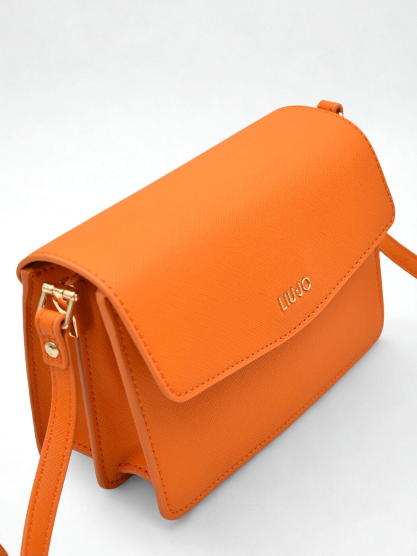 Choć torebka zachwyca swoim kolorem, nie brakuje jej także eleganckich detali. Z przodu znajduje się subtelne, złote logo Liu Jo, które dodaje szyku i podkreśla prestiż marki. Starannie wykończone krawędzie oraz struktura saffiano sprawiają, że model ten prezentuje się wyjątkowo ekskluzywnie. Pomarańczowa torebka Patrizia Pepe dzięki takim elementom wyróżnia się spośród innych modeli i z łatwością dopasuje się zarówno do casualowych, jak i bardziej eleganckich zestawów. Co więcej, lekka konstrukcja i sztywna forma sprawiają, że torebka zawsze zachowuje swój kształt, co zwiększa jej estetykę i funkcjonalność.