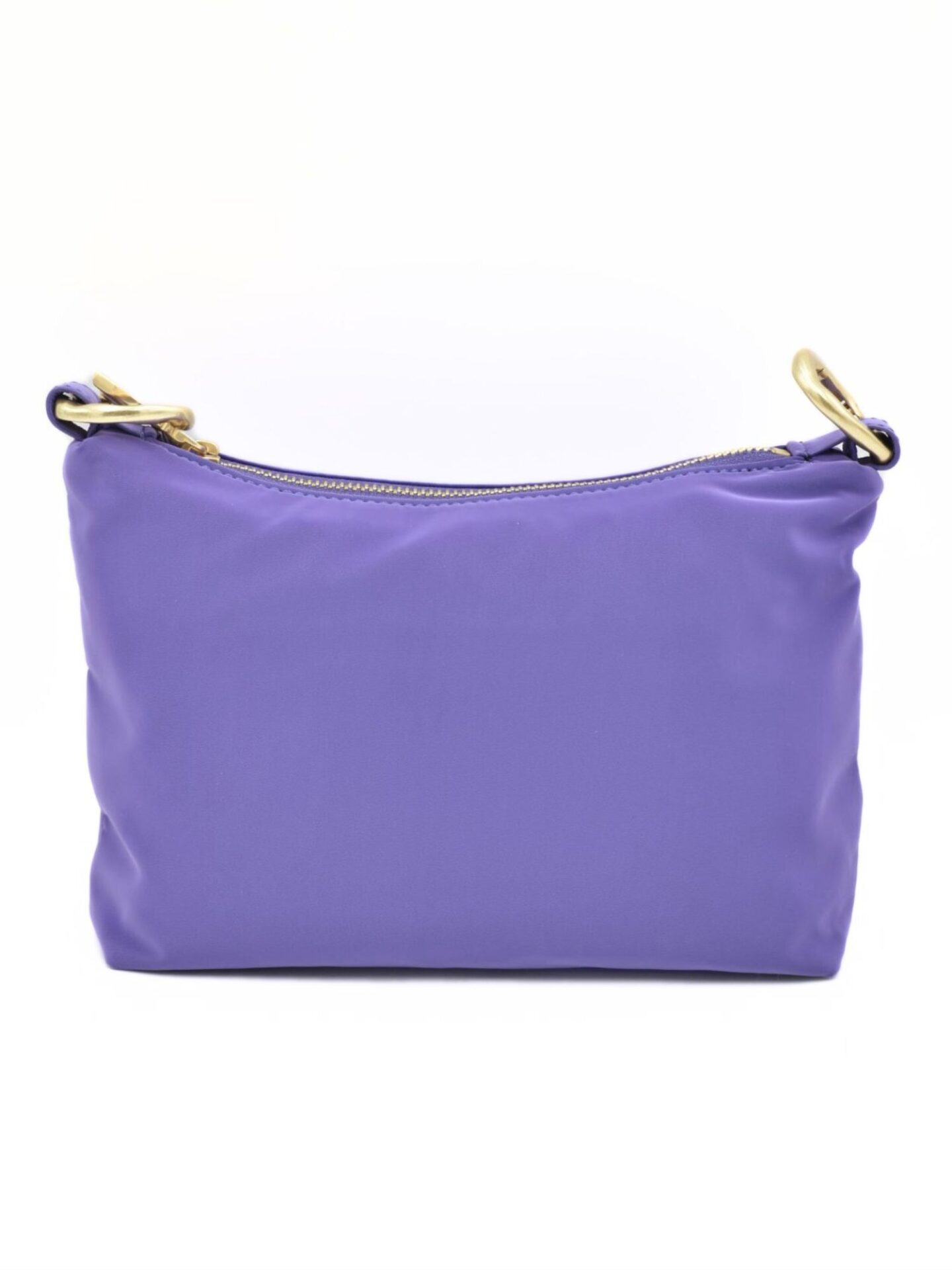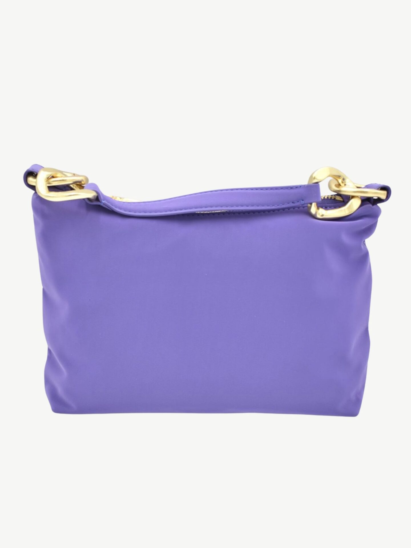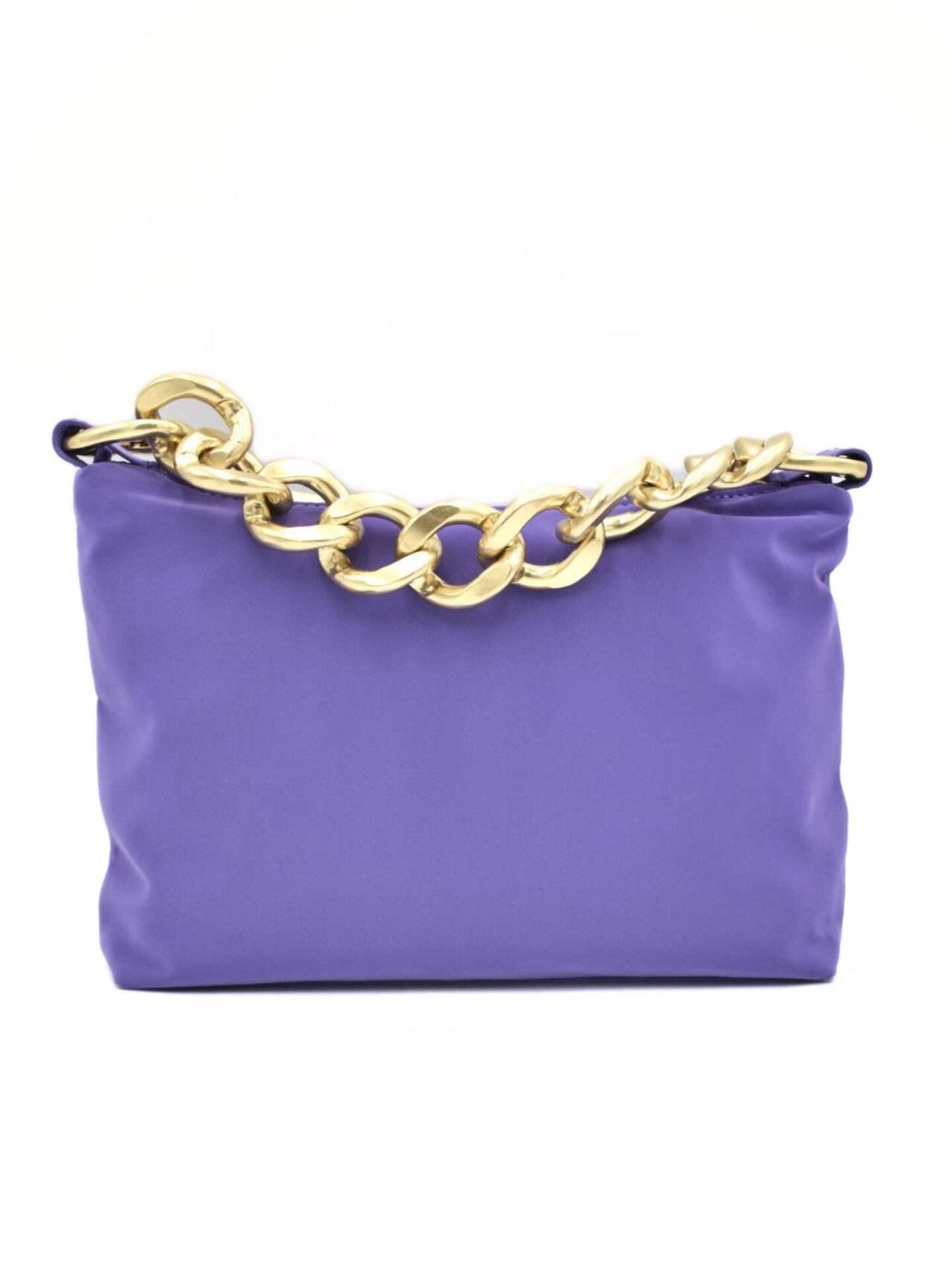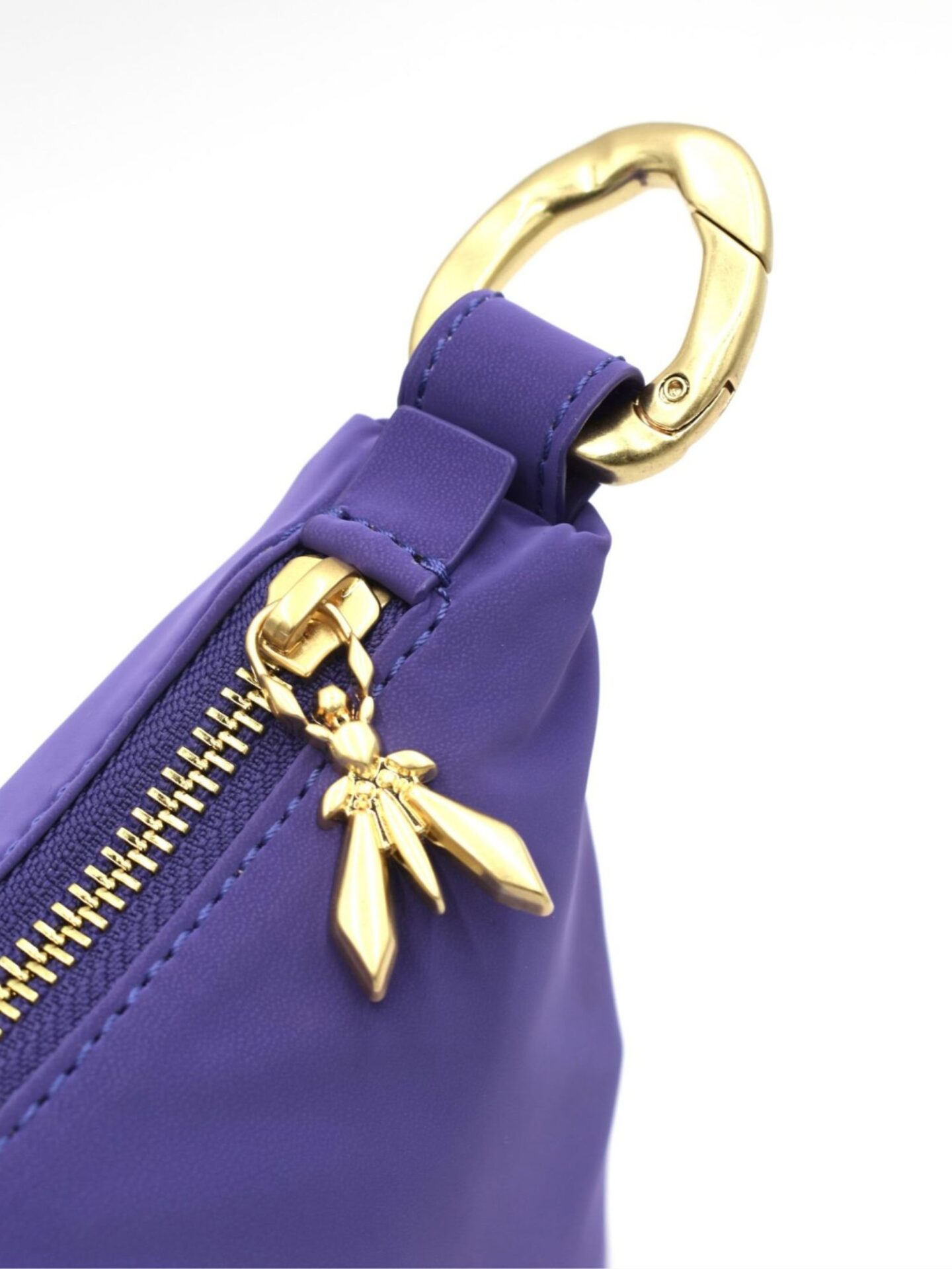 Fioletowa torebka Patrizia Pepe to propozycja dla kobiet, które lubią wyróżniać się stylowym dodatkiem. Intensywny, głęboki fiolet przyciąga wzrok i podkreśla nowoczesny charakter stylizacji. Torebka wykonana została z wysokiej jakości nylonu, który jest nie tylko lekki, ale również odporny na wilgoć. Dzięki temu możesz mieć ją zawsze przy sobie, niezależnie od pogody. Delikatna faktura materiału dodaje jej miękkości i subtelnego połysku, który doskonale komponuje się ze złotymi elementami.