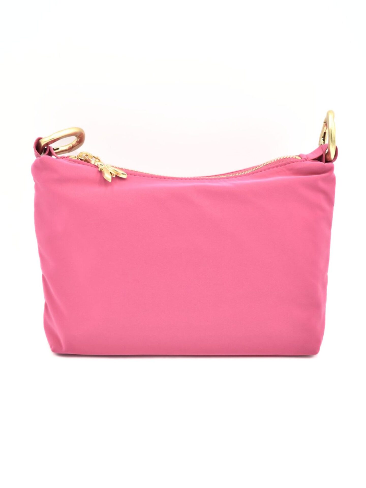 Wyjątkowym atutem tej listonoszki jest jej materiał – wodoodporny nylon, który skutecznie odpycha wilgoć. Dzięki temu torebka zyskuje nie tylko estetyczny, ale również praktyczny charakter. Jej forma jest lekka i elastyczna, co sprawia, że świetnie dopasowuje się do sylwetki podczas noszenia. Różowy odcień znakomicie współgra ze złotymi dodatkami, tworząc kompozycję pełną świeżości i klasy.