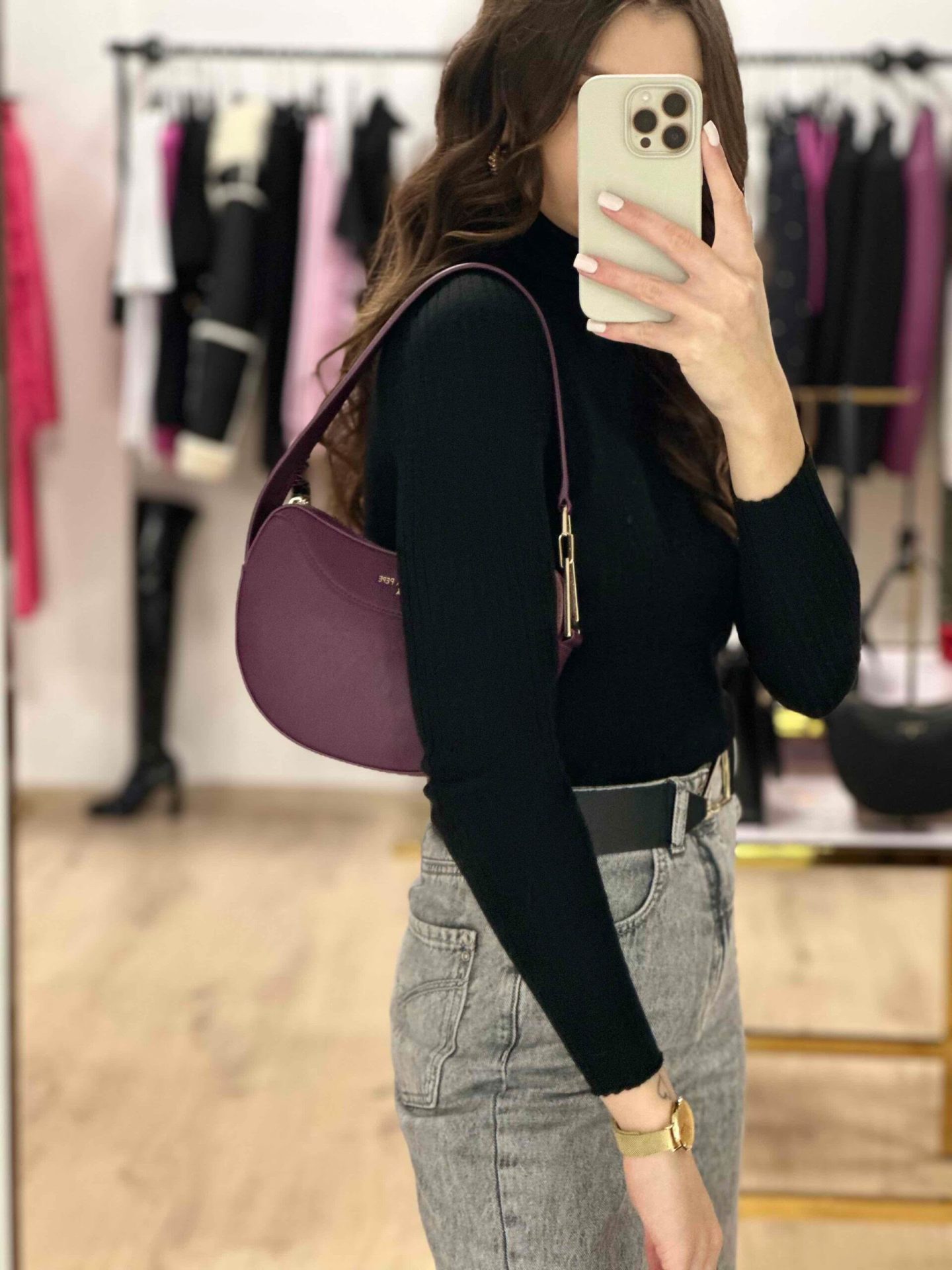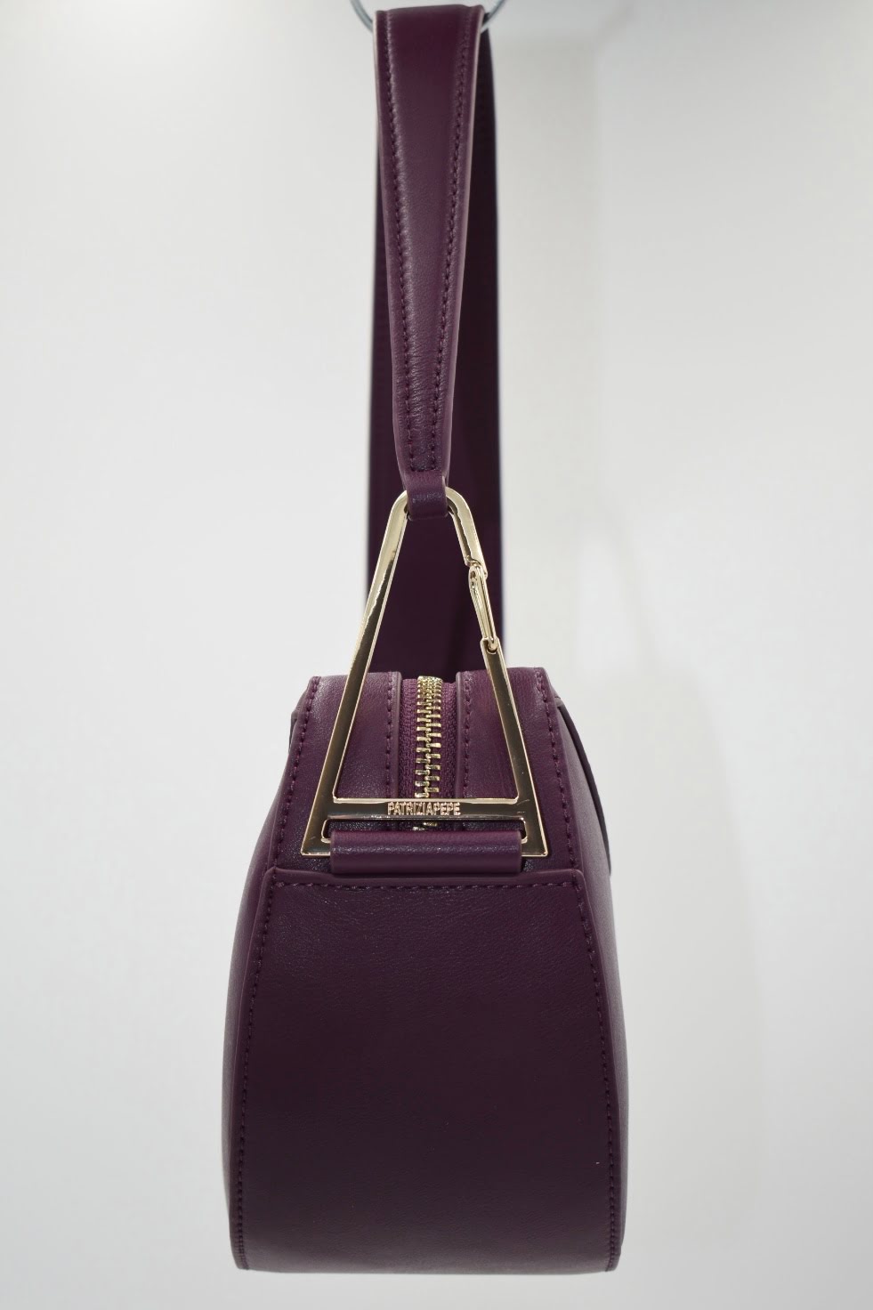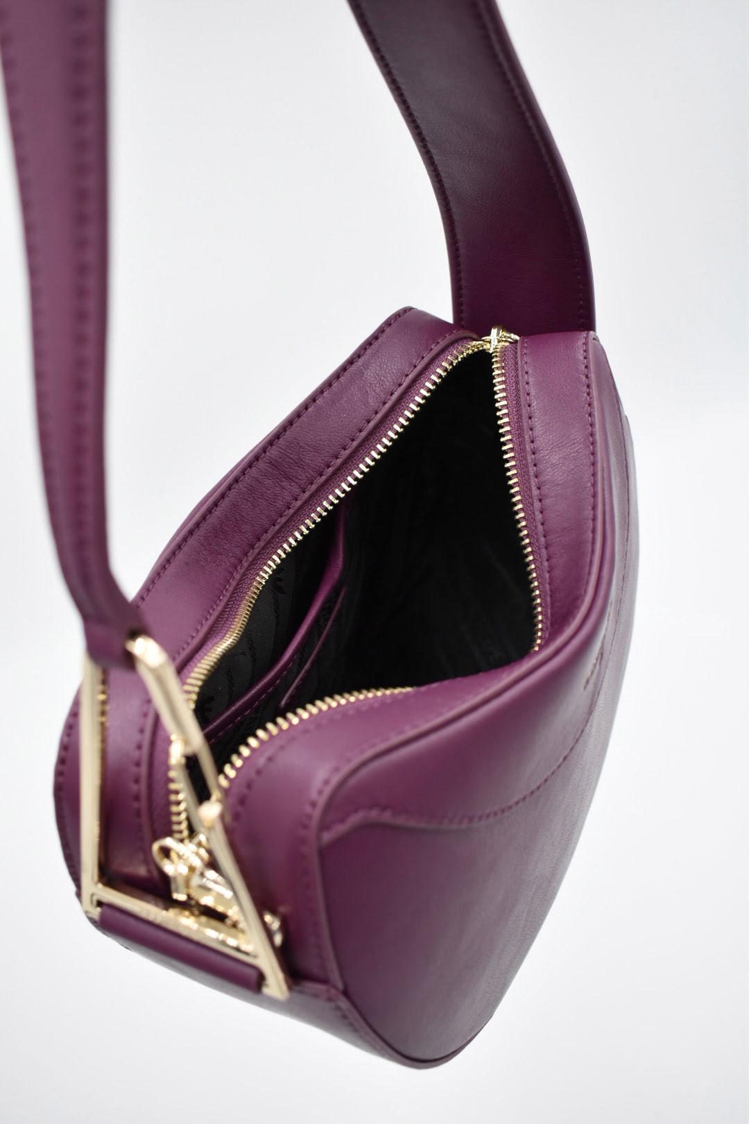 Torebka ze skóry naturalnej włoskiej marki Patrizia Pepe w kolorze śliwkowym. Wykonana z gładkiej skóry. Torebka na ramię lub do ręki. Z przodu torebki delikatny, nierzucający się w oczy napis Patrizia Pepe oraz logo marki. Wnętrze torebki to jedna duża komora oraz jedna mniejsza. Zamek działający w dwie strony. Dodatki w kolorze jasnego złota. Torebka idealnie sprawdzi się zarówno do codziennych stylizacji jak i na większe bardziej eleganckie wyjścia. W zestawie bawełniany worek przeciwkurzowy do przechowywania.