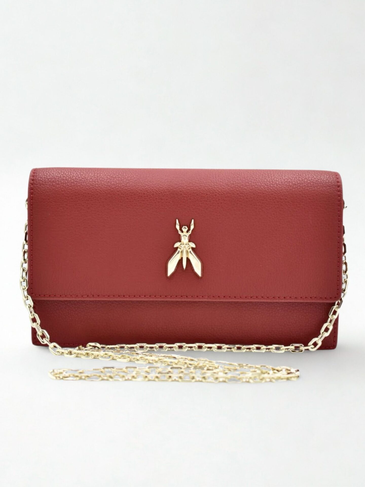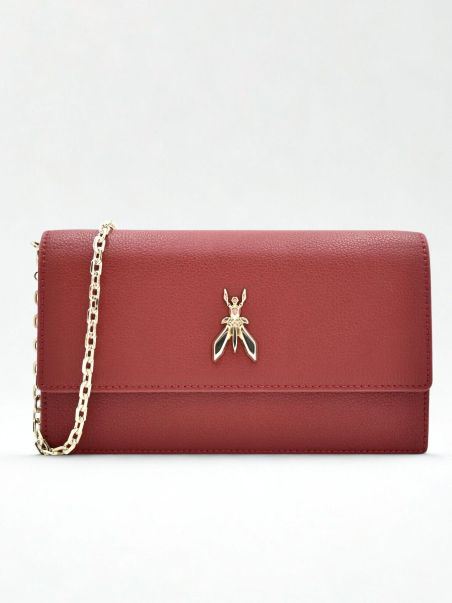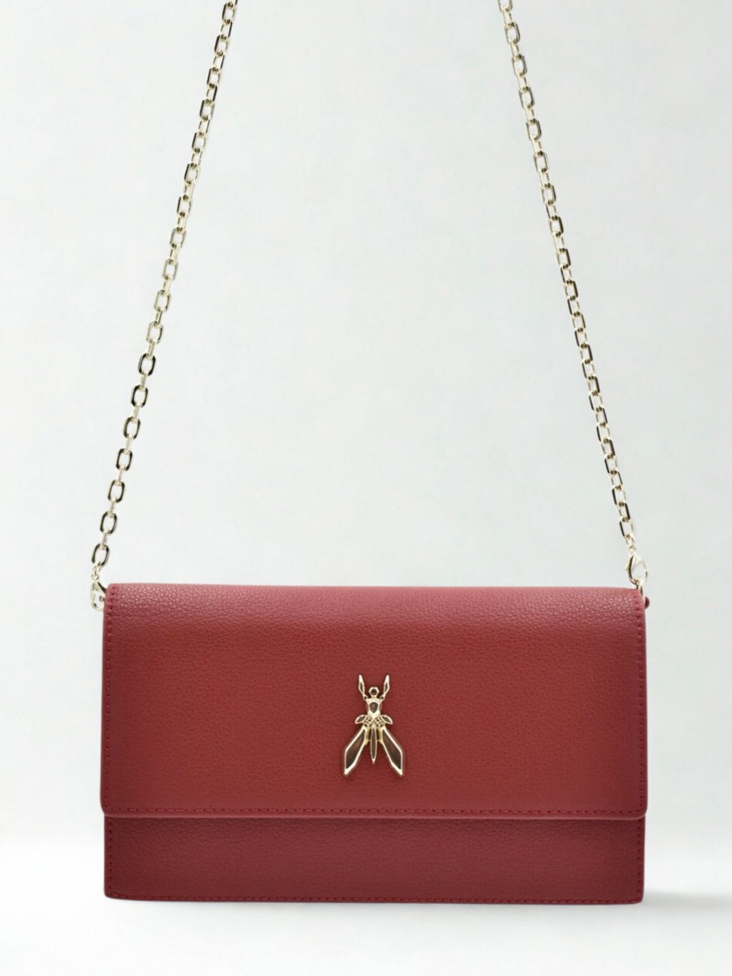 Model ozdobiono złotymi detalami, które pięknie kontrastują z czerwonym kolorem skóry. Elegancki łańcuszek pełni funkcję paska – możesz go łatwo odpiąć, zmieniając torebkę w wieczorową kopertówkę. Maksymalna długość paska wynosi 113 cm, co zapewnia komfort noszenia zarówno na ramieniu, jak i w wersji crossbody. Solidne zapięcia i wykończenia świadczą o wysokiej jakości wykonania. Logo w postaci charakterystycznej muchy dodaje torebce charakteru i podkreśla jej markowy rodowód. Każdy element zaprojektowano z myślą o użytkowniczce, która oczekuje stylu, ale nie chce rezygnować z wygody.