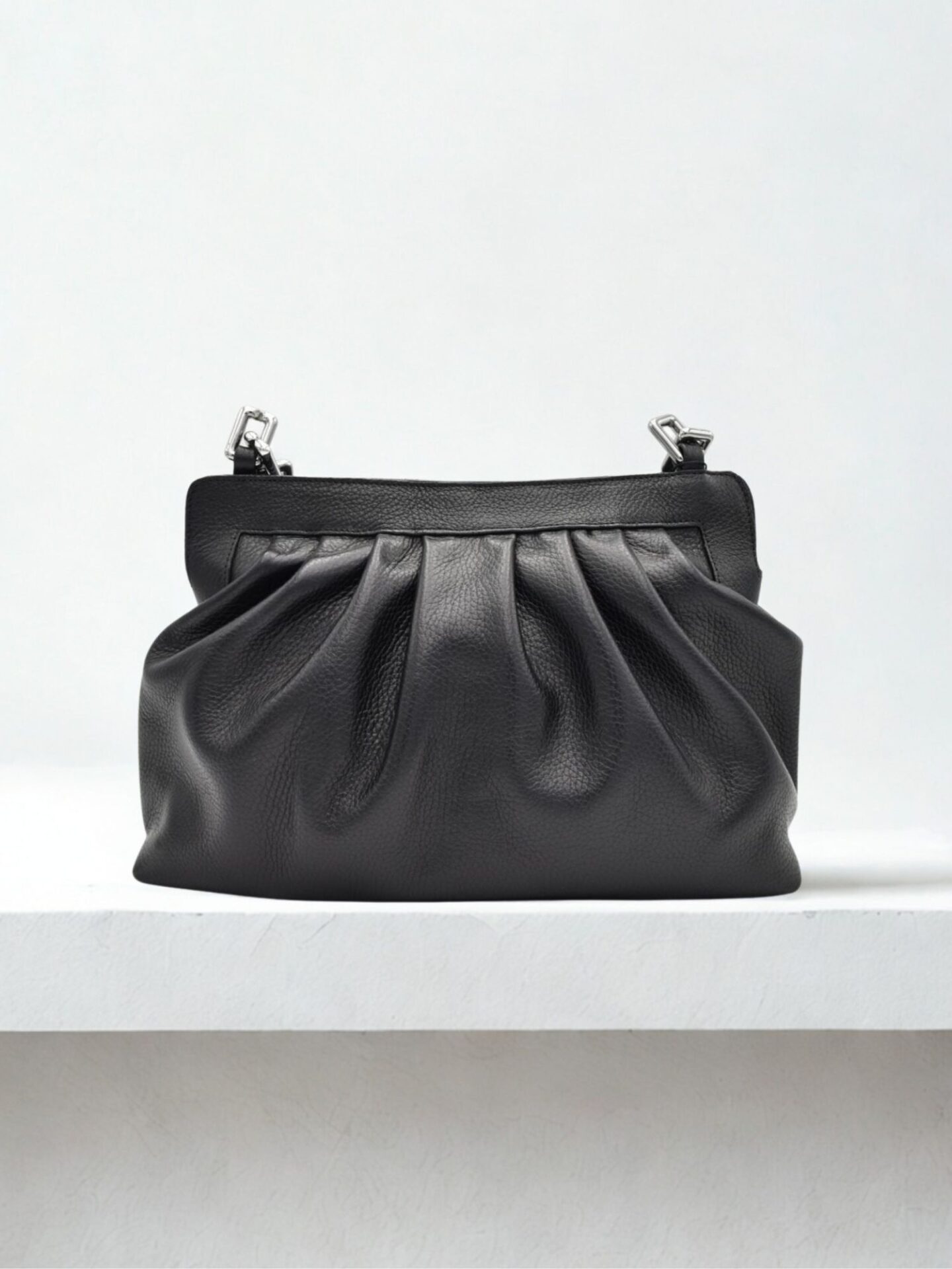 Jakość jest dla nas priorytetem. Torebkę wykonano ze starannie wyselekcjonowanej skóry naturalnej. To gwarantuje jej wyjątkową trwałość oraz piękny wygląd przez lata. Skóra naturalna z upływem czasu nabiera jeszcze większej szlachetności. Dzięki temu torebka zachowa swój pierwotny urok na wiele sezonów. Klasyczny czarny kolor jest niezwykle uniwersalny. Łatwo dopasujesz go do każdej stylizacji, tworząc spójne i eleganckie połączenia. Wybór tego modelu to inwestycja w jakość.
